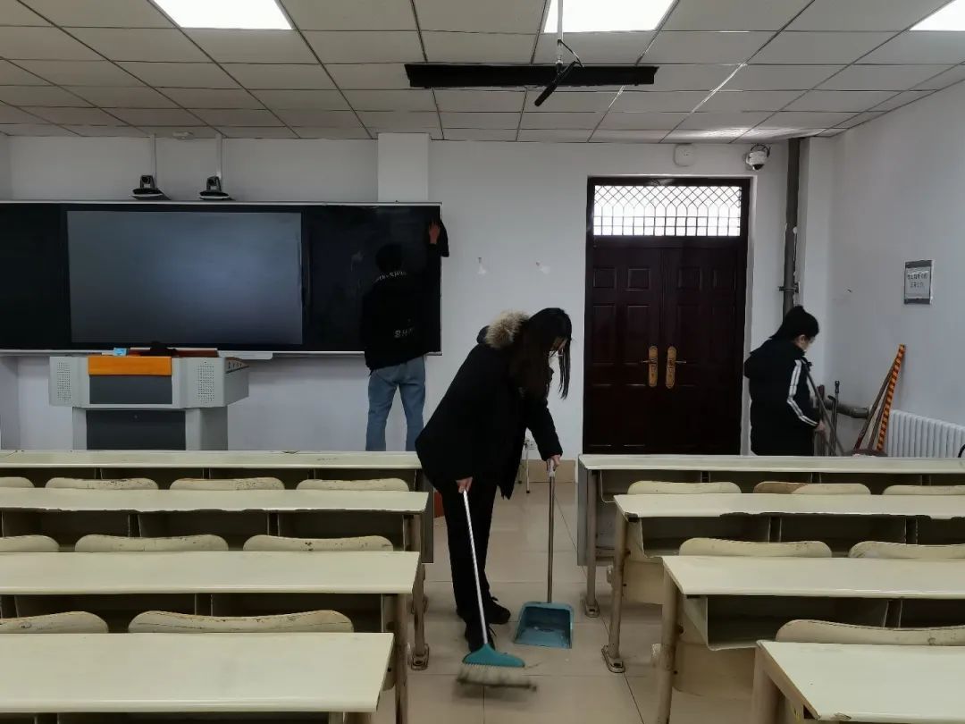 通过联系各位老师明确找到需要护理的多媒体教室,本周党员服务区域最终确定为9号楼教学楼412、414、510、512多媒体教室,学生党员陆续走进多媒体教室,大家迅速就位熟络工作内容,明确分工。一组人员进行负责擦净黑板、讲台、窗台、桌面上的粉笔尘和灰尘,摆放扫帚,将杂物归纳,清洗板擦,地面清理。另一组人员对多媒体进行维护和保养,共同营造整洁的多媒体教室气氛,beat365正版唯一官网学生公寓党员工作站也在扫除中一尘不染。党员志愿服务示范岗将立足学生公寓党员工作站实践锻炼平台,针对学生日常实际,就学业帮困、升本考研、心理援助、就业信息等方面进行志愿服务,根据学生党员个人意愿及专长来配置岗位,调动和发挥学生党员的积极性和能动性。从学生需求和党员实际出发,充分发挥导向功能,促使党员干部立足现实,服务同学,解决最基本的教学问题。