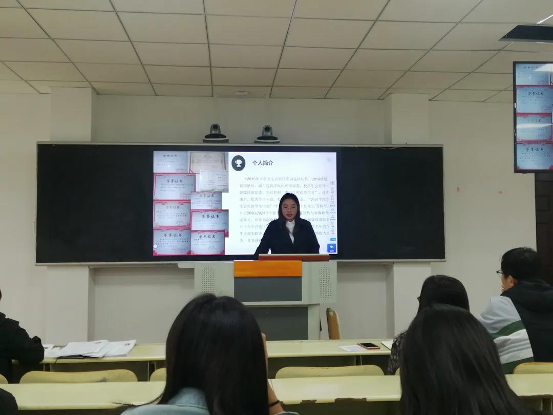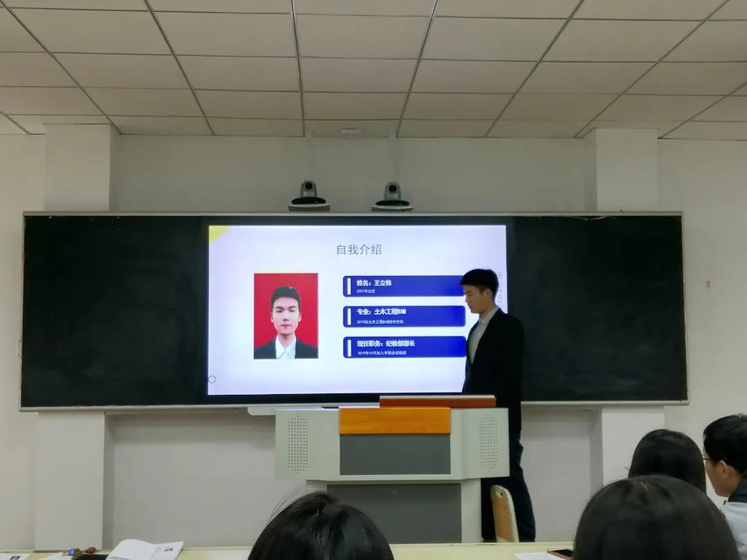 此次竞选以个人答辩加结构化面试的方式进行,大会伊始,进行主席团竞选,由学习部副部长卢文龙,青年志愿者协会部长张伟豪,纪检部部长王立栋,秘书处副秘书长李文龙,学习部部长席昌龙,组织部副部长许嘉昕,督察部部长邵炳衡,宣传与新媒体部部长孙华燕,组织部副部长费雯丽参加主席团竞选,竞选者分别上台进行竞选演讲随后评委老师进行提问,学习部副部长卢文龙首先上台进行演讲,卢文龙围绕、对学生组织的认识、对竞选岗位的认识及工作构想等方面展开精彩的自我陈述并总结过去工作经验,提出解决当前工作问题的措施,制定未来工作计划。督察部部长邵炳衡发言:“假如我当选,我会做到:进一步完善自己,提高自己各方面的素质,积极的心态和高度的责任心并且将其做得更好。”