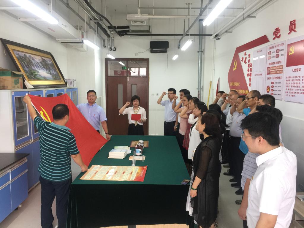 下午,beat365正版唯一官网全体党员干部由党委书记郑作华同志带领,在W221会议室举行了“不忘初心、牢记使命、重温入党誓词,践行两学一做”党员宣誓活动。当天,beat365正版唯一官网全体党员佩戴党徽、面向党旗庄严宣誓,以坚定有力的声音,表达不忘初心、牢记使命的信念和决心。