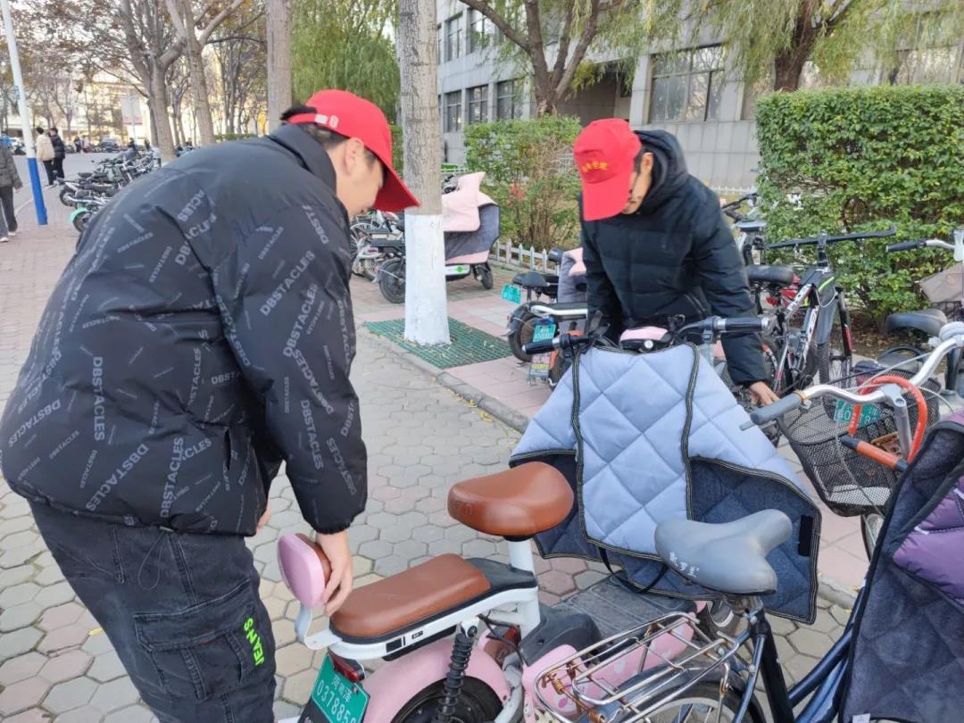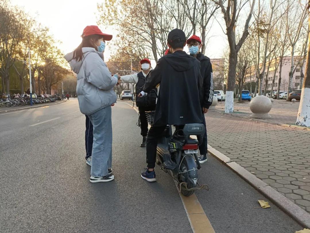 活动伊始,志愿者们在国旗下集合,并进行各项任务的分配,志愿者们分为两组开展活动。一组主要的任务主要对未佩戴头盔的电动车车主进行耐心地劝导和纠正,提高同学们对未佩戴头盔骑行的危险性的意识,并主动佩戴头盔。二组志愿者则重新摆放不符合停放规范的电动车和自行车。在主席团的带领下,志愿者们各司其职,引导同学们遵守交通规则。志愿者们热心、积极、主动的进行志愿服务得到了同学的认可和赞扬。