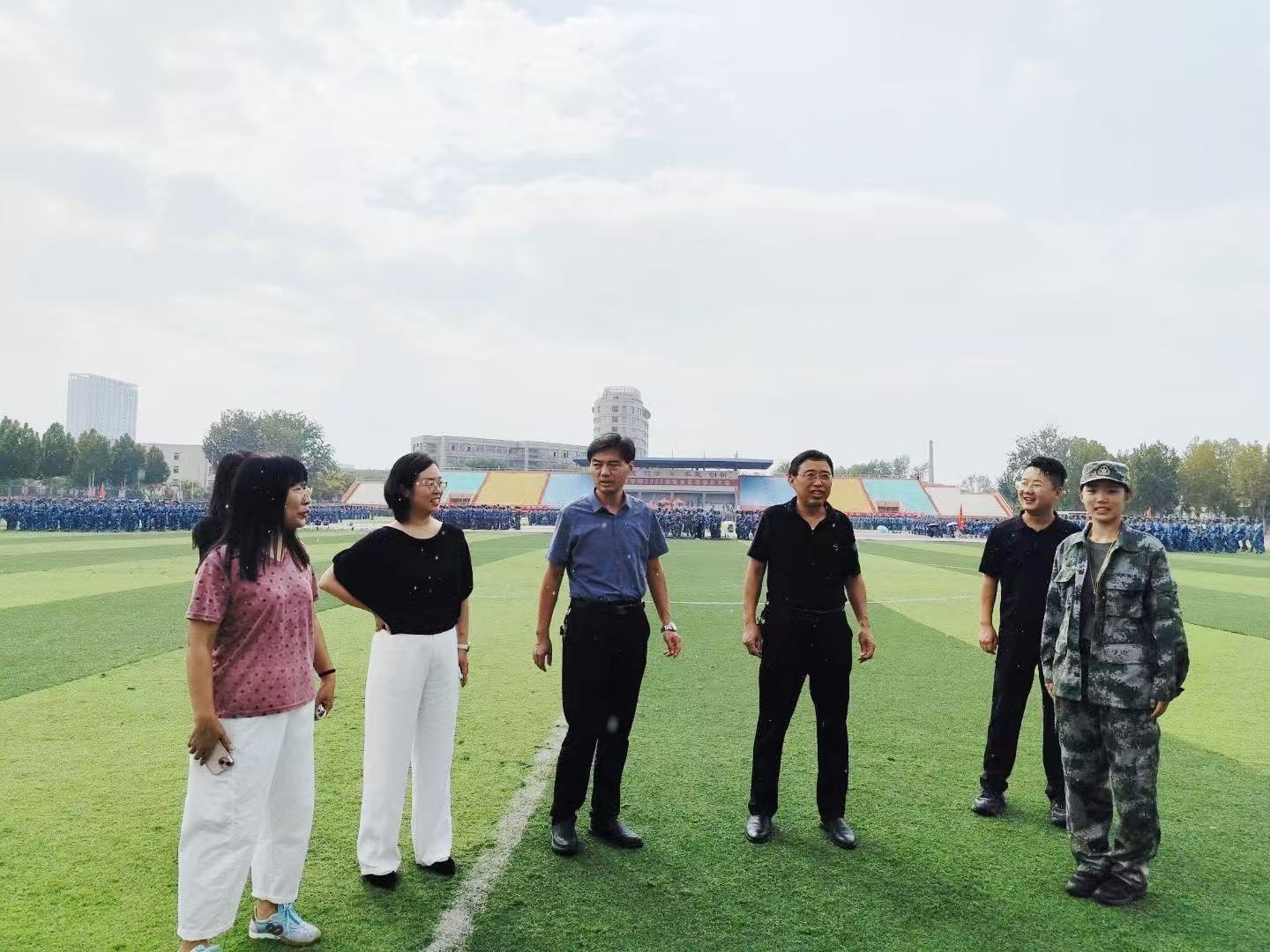 9月15日下午,细雨蒙蒙,学院党委书记李战国、院长高涛、党委副书记佀君淑一行前往学校军训场地,亲切看望并鼓励正在参加军事训练的2025级全体新生及承训教官。