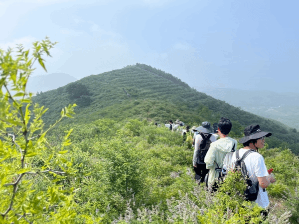 尽管烈日炎炎,汗水湿透衣衫,但我们依然充满热情,翻过一座又一座山头。途中偶遇聊城大学的同学们,他们热情的招呼,让我们感受到兄弟院校间的深厚情谊。