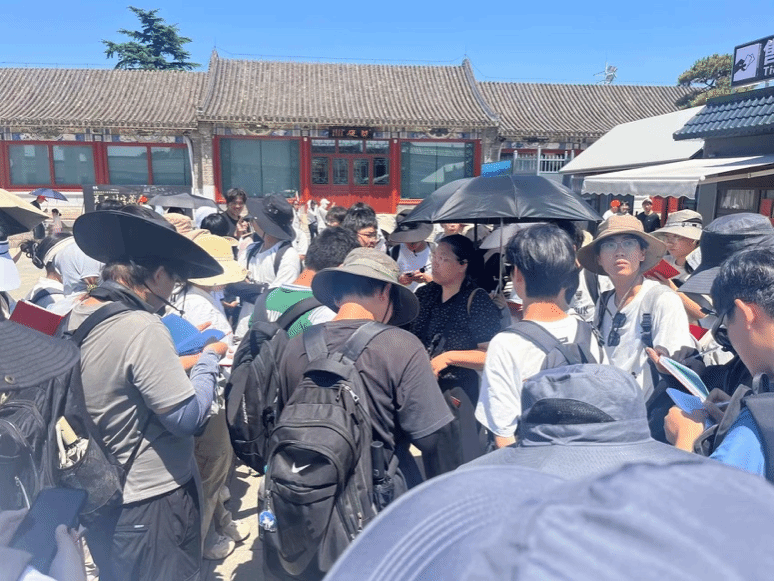 随后行至“两京锁钥无双地”的天下第一关——山海关。高晓玲老师在景区门口讲述了山海关的历史渊源以及分享了自己的游学经历。同学们登上雄伟的箭楼,眺望长城内外,领略到长城作为古代军事防御工程的战略意义。在古城中,大家穿梭于古老街巷,研究明清时期的建筑风格与城市布局,深入探究历史文化与地理环境的相互关系。