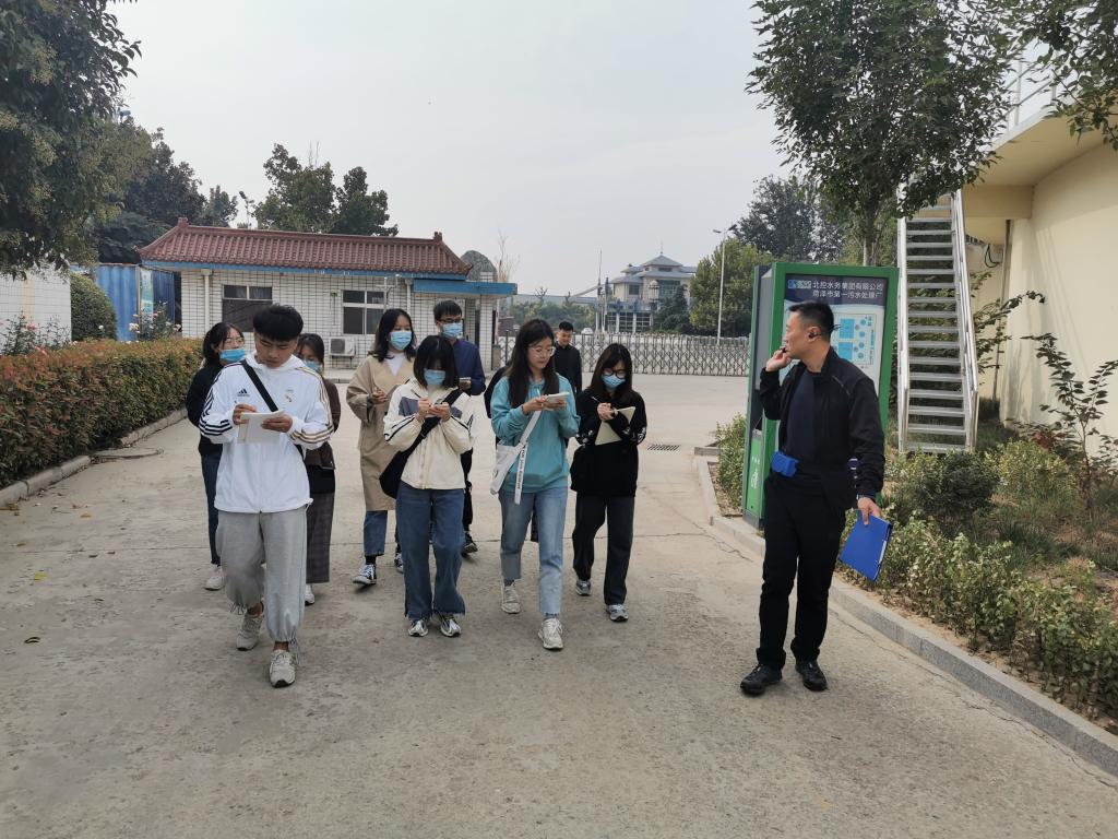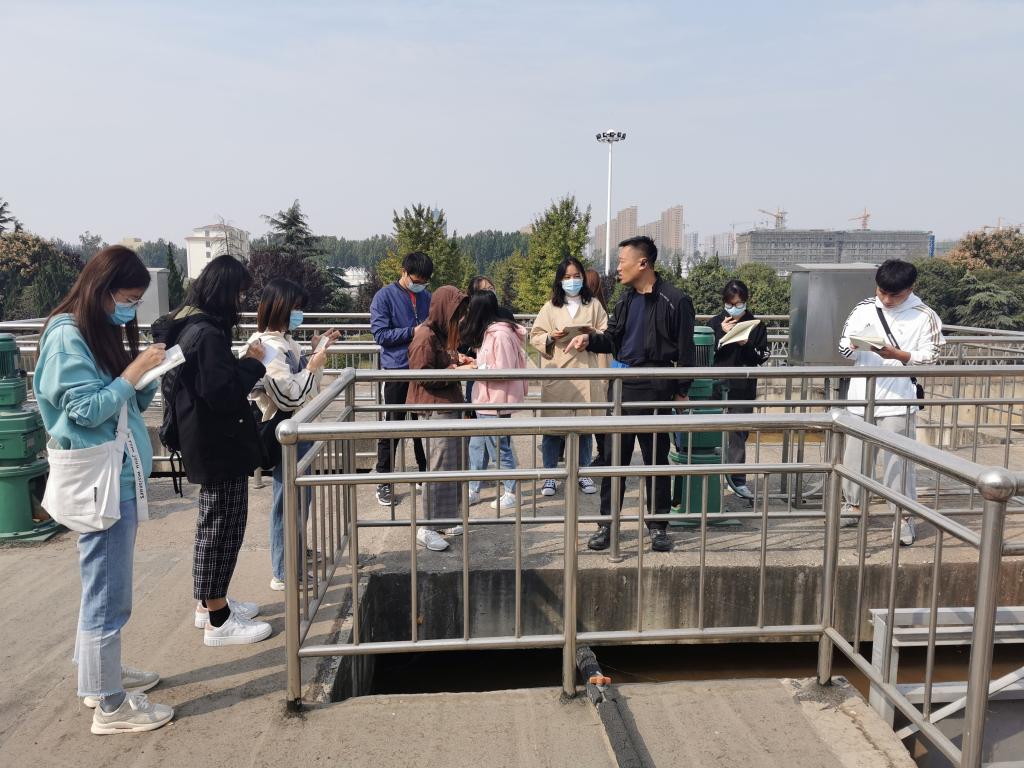 在实习现场,姬生锋经理首先带领大家参观了一期处理工程的粗格栅、细格栅、旋流沉砂池、厌氧池、缺氧池、耗氧池、污泥泵池、沉淀池、加药间、出水渠、脱泥池,并详细讲解了各种污水处理设备以及它们的工作原理。学生们目睹了城市生活污水经过一步步地净化过程,最后变为澄清的水流,达到国家规定排放标准,以便供相关部门循环利用和排入自然界水体。姬经理在讲解过程中对学生提出的关于污水的来源、成效及用途等问题进行了详细解答。而后又带大家参观了二期工程,整个参观过程中,大家都仔细听讲,认真做笔记。同学们不仅对城市污水处理有了切身感受和深入认识,而且能够将在课堂上学习的理论知识与生产工艺实践相结合,提高了学以致用的能力。