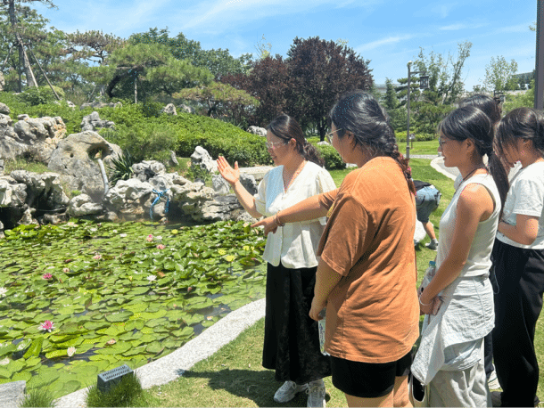 在焦作红石峡,围绕“地貌认知—问题发现—专业应用”主线,引导学生掌握用专业视角解读自然、以设计手段回应场地的实践方法。然后赴茱萸峰挖掘地质地貌、生态环境与历史文化价值,思考自然人文和谐共生的空间营造;随后深入小寨沟、猕猴谷,探究“机理与城乡空间的共生逻辑”,理解自然环境下的规划设计思路。在洛阳龙门石窟之行中,师生剖析“崖壁建筑”结构智慧,开展“石窟语境下的空间营造与文化转译”研讨;在洛阳博物馆,解读新馆设计对传统元素的应用,总结“传统形制抽象化”设计手法。最后,万岁山考察聚焦“山地建筑”类型与地形,讲解地形利用与空间衔接策略;探访铁塔,对比砖石结构与现代体系,剖析“层叠出檐+中心柱”抗震原理,深化对构造与景观稳定性关联的理解,持续拓宽专业视野。