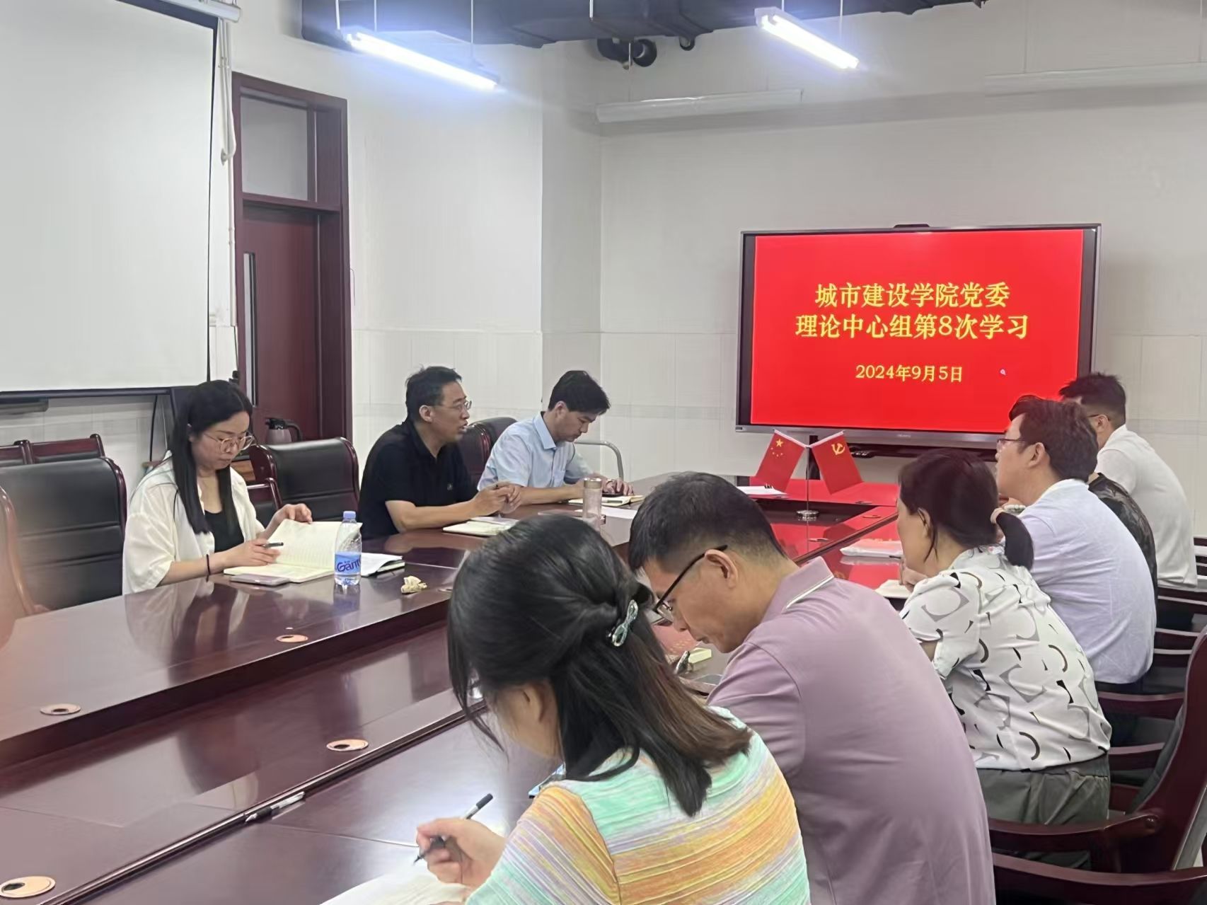 9月5日下午,beat365正版唯一官网党委理论学习中心组集体学习在综合实验楼W221进行,党委书记李战国主持学习并讲话,党委副书记、院长高涛及其他党委理论学习中心组成员参加学习。