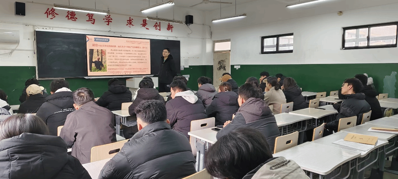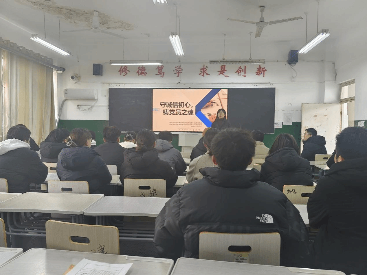 本次主题党日紧扣“学诚信,观影片,守考纪”主旨展开。会议伊始,刘兴飞详细阐述了诚信考试的重要性,鼓励学生党员在考试中做到诚实守信,不作弊、不抄袭,以实际行动践行诚信原则。希望学生党员们能够将诚信考试的理念内化于心、外化于行,影响和带动周围同学树立正确价值观,共同营造良好的考试氛围。全体党员全神贯注聆听,精准把握诚信考试的要求与规范,以党性修养为基,严格自我约束。紧接着,全体党员一同观看反面案例警示片,为党员们敲响警钟,筑牢思想防线。活动尾声,由党员代表徐继发带领全体学生党员共同宣誓,表达自己对诚信考试的承诺和决心。党支部向党员分发诚信考试党员身份牌,鞭策党员在考场上严守纪律,以身作则,恪守诚信。