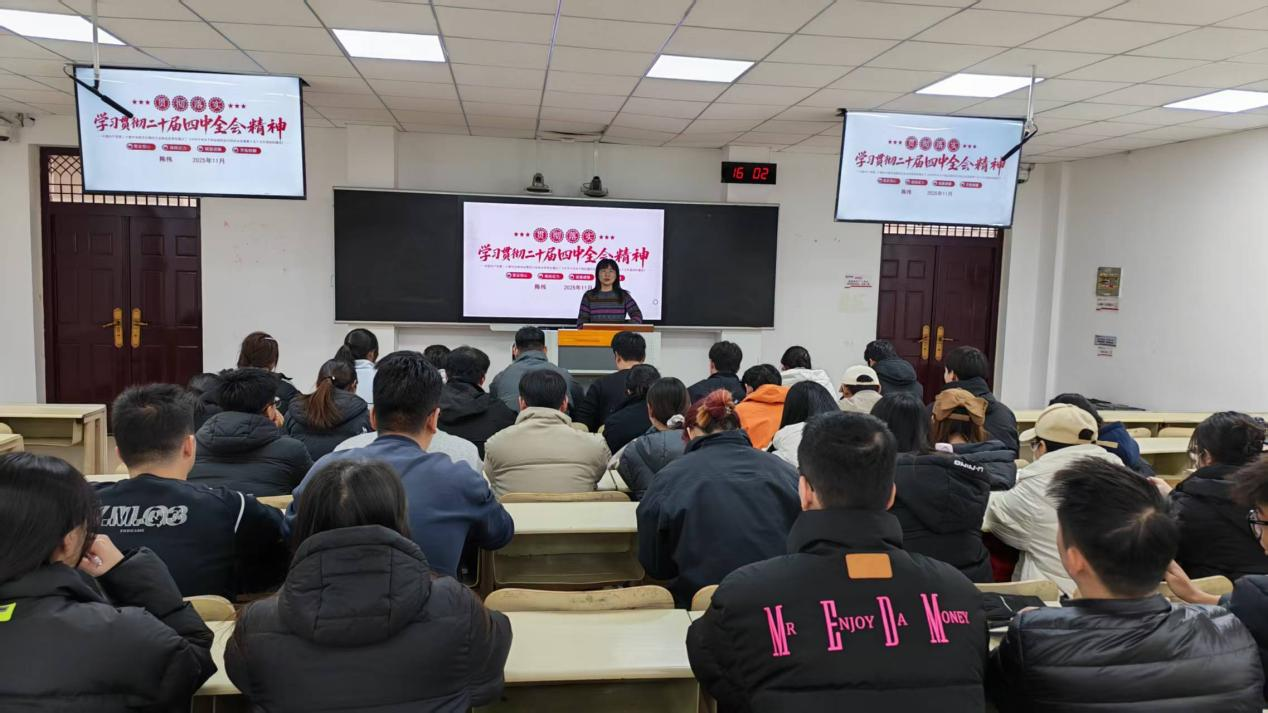 本次活动主要由陈伟带领大家系统梳理并深入解读党的二十届四中全会的基本概况和公报内容,详细阐释公报提出的重大思想观点、关键制度安排及重要工作部署,帮助学生党员深入了解党的全会精神。她重点解读了公报中的核心要求:学习贯彻全会精神是当前和今后一个时期全党全国的重大政治任务,需通过多种方式推动全党全社会深刻领会;强调治国必先治党,党兴才能国强,管党治党成效直接关乎经济社会发展保障力度;号召全党全军全国各族人民紧密团结在党中央周围,为基本实现社会主义现代化、开创中国式现代化新局面而共同奋斗。陈伟的讲解激励了学生党员,大家纷纷表示要将全会精神落实到具体行动中,转化为推动学习的强大动力。
