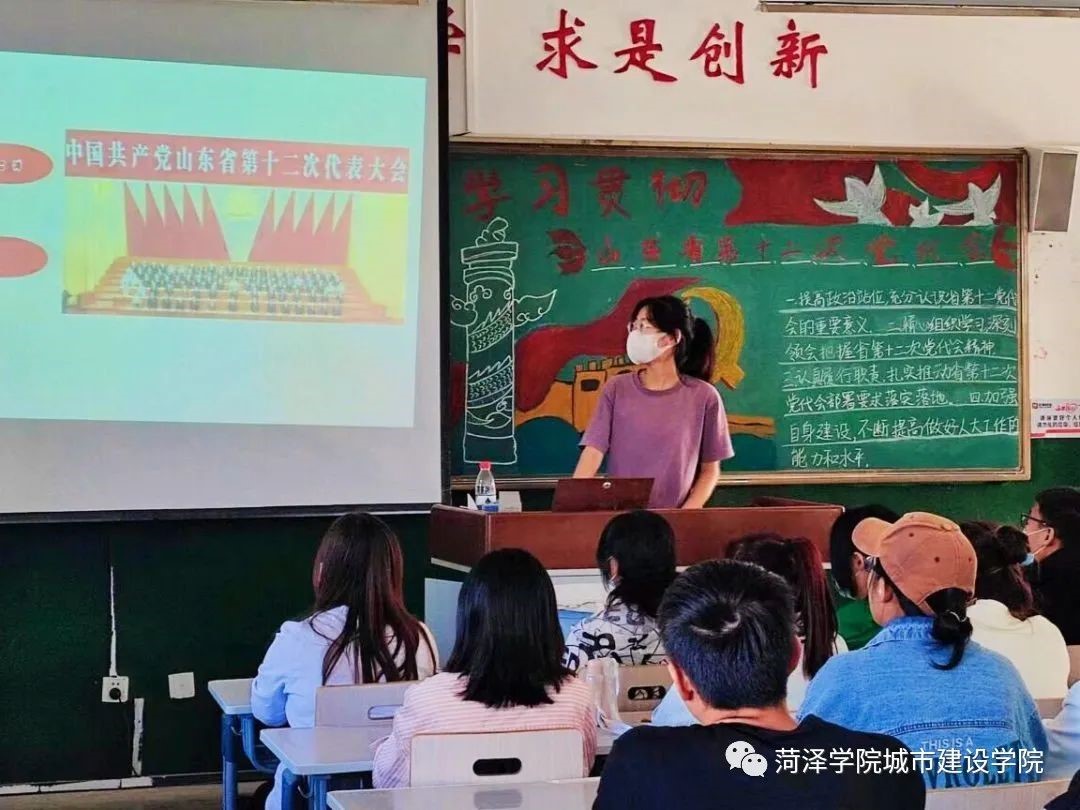 为深入学习了解党代会背景,贯彻党代会精神。9月22日,beat365正版唯一官网2021级城乡规划专业于7号楼214教室举办“学习贯彻山东省第十二次党代会”主题论坛活动,2021级城乡规划班级全体同学参加,团支书张萌主持。