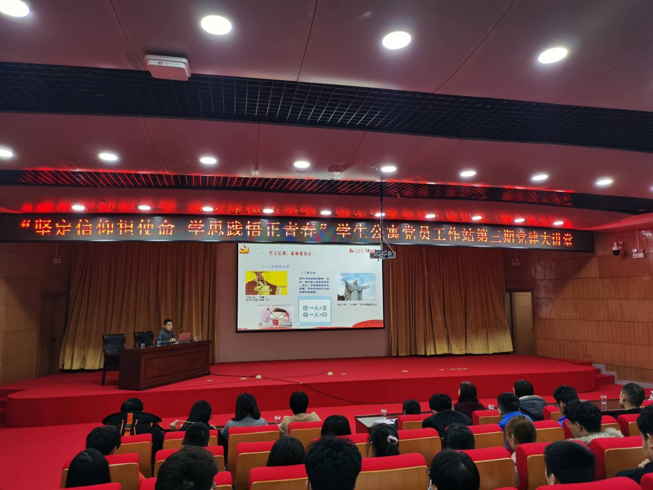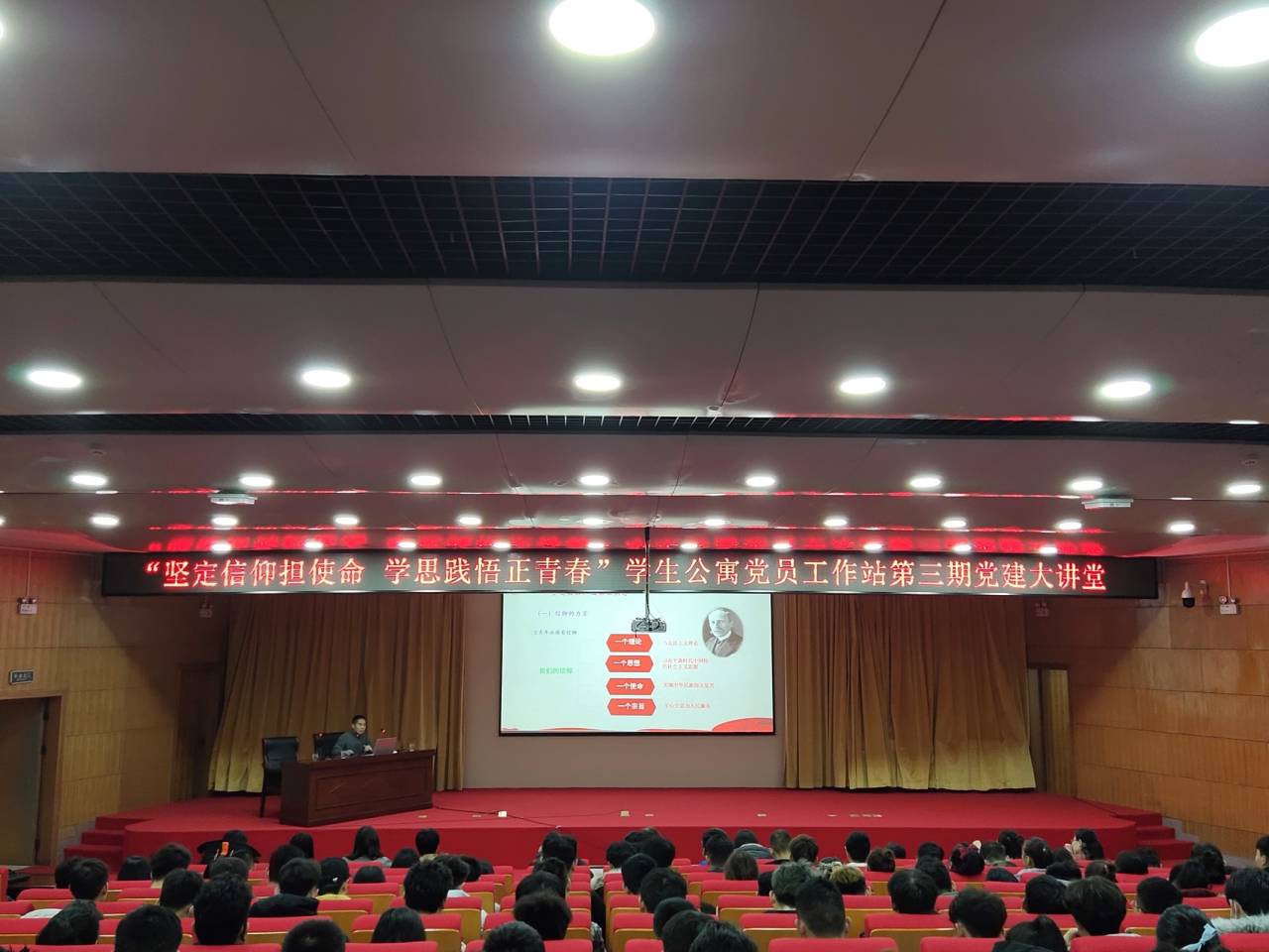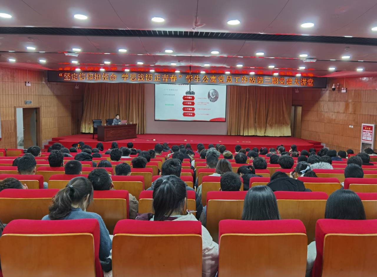 为促进学生党员模范引领作用,推动学生公寓党建工作,引导大学生树立崇高的理想信念,形成正确的世界观、人生观、价值观,培养为国家富强、民族复兴而发奋学习的强烈责任感与使命感。11月26日下午在新图书馆一楼学术报告厅开展以“坚定信仰担使命 学思践悟正青春”为主题的学生公寓党员工作站第三期党建大讲堂。本次讲座由beat365正版唯一官网学生公寓党员工作站主办,beat365正版唯一官网、商学院、物理与电子工程学院分站承办,beat365正版唯一官网学生公寓党员工作站代表,beat365正版唯一官网、商学院、物理与电子工程学院分站全体成员参会。