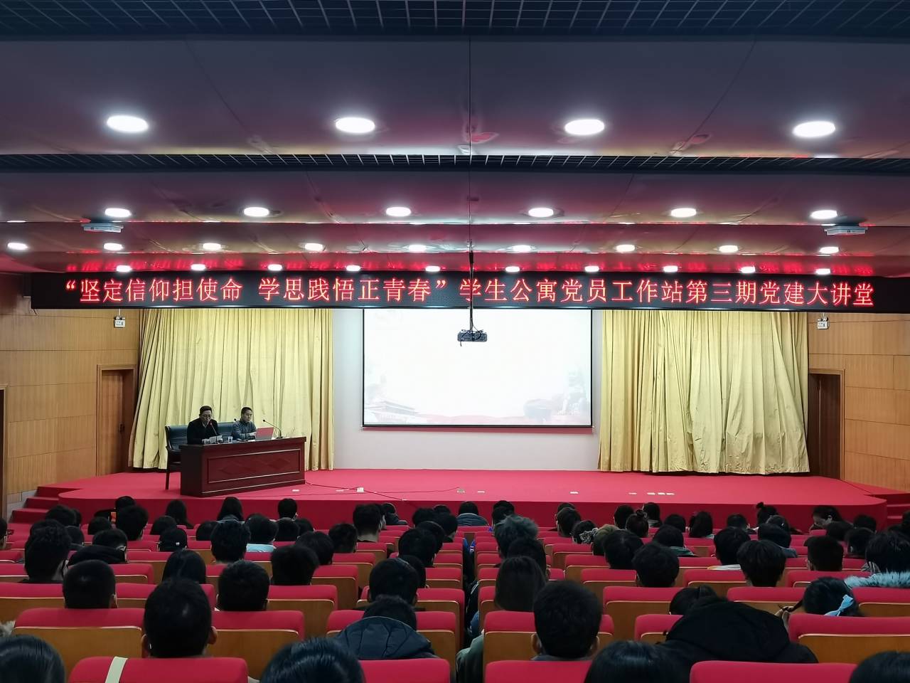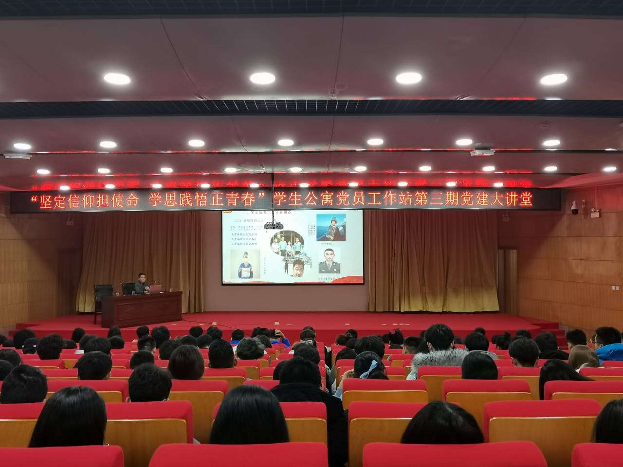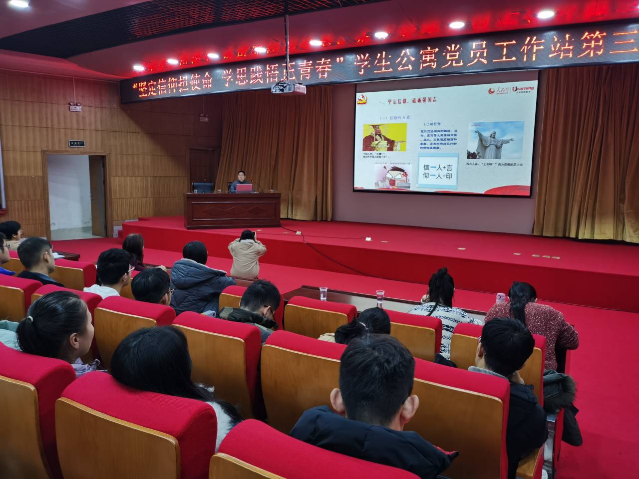 为促进学生党员模范引领作用,推动学生公寓党建工作,引导大学生树立崇高的理想信念,形成正确的世界观、人生观、价值观,培养为国家富强、民族复兴而发奋学习的强烈责任感与使命感。11月26日下午在新图书馆一楼学术报告厅开展以“坚定信仰担使命 学思践悟正青春”为主题的学生公寓党员工作站第三期党建大讲堂。本次讲座由beat365正版唯一官网学生公寓党员工作站主办,beat365正版唯一官网、商学院、物理与电子工程学院分站承办,beat365正版唯一官网学生公寓党员工作站代表,beat365正版唯一官网、商学院、物理与电子工程学院分站全体成员参会。
