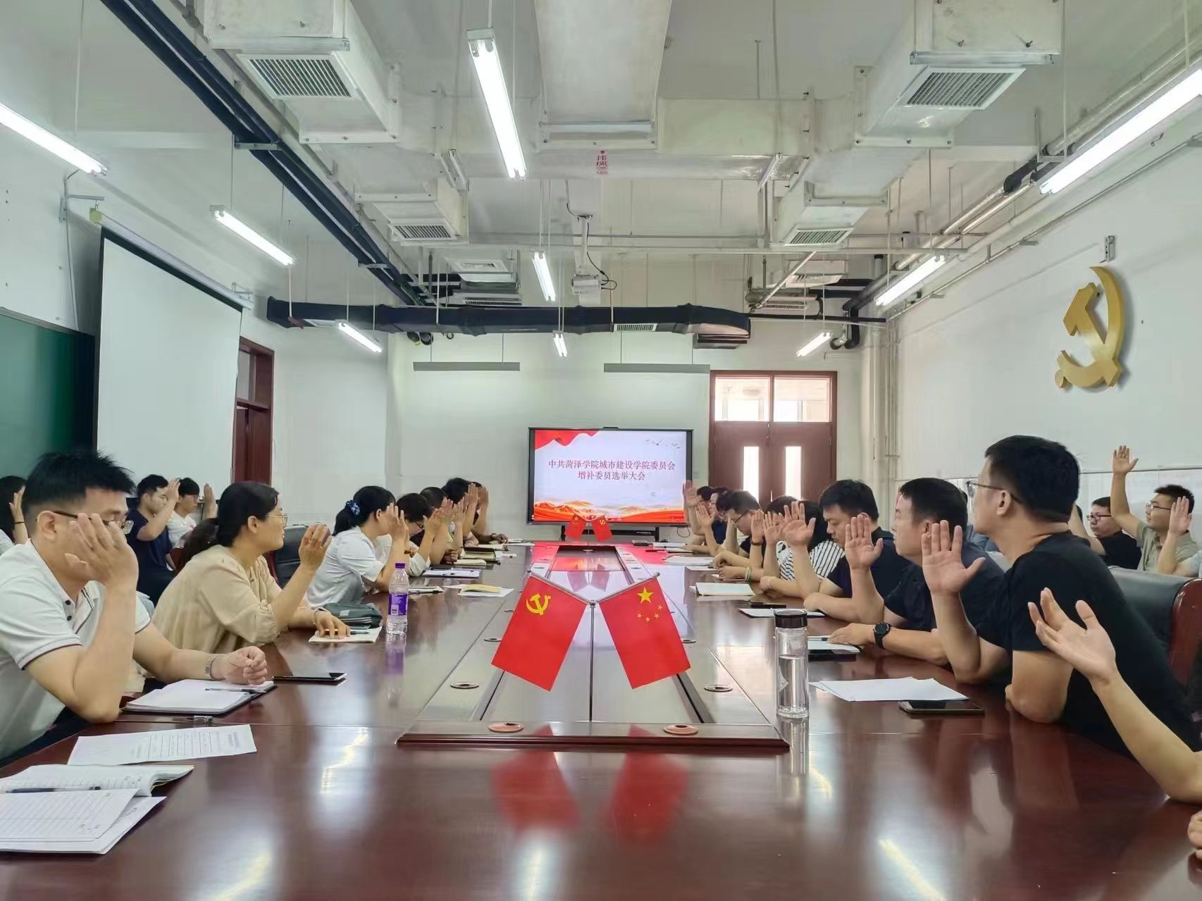 6月28日上午,beat365正版唯一官网于综合实验楼W221会议室组织召开党委委员增补选举党员大会,旨在完善beat365正版唯一官网党建工作组织架构,进一步促进党建工作开展。本次大会由党委书记李战国主持,学院党委委员、全体师生党员参加。