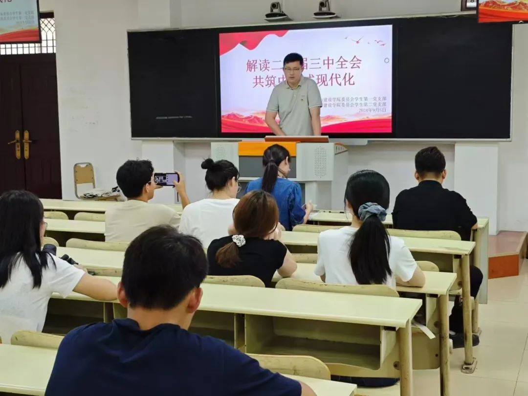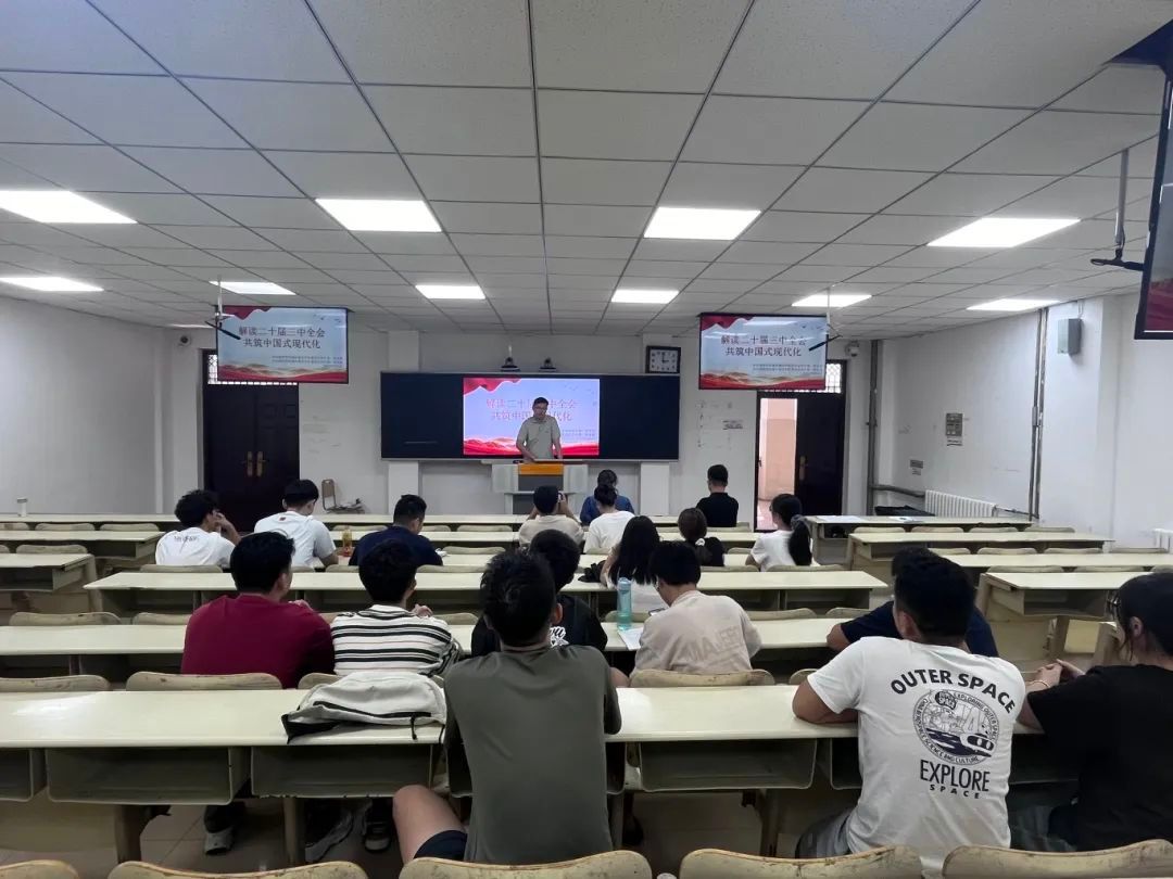 为深入了解学习二十届三中全会的理论内容,理解中国式现代化的内涵、特征和要求,明确在推进中国式现代化过程中各自的责任和担当,9月5日,beat365正版唯一官网学生第一、二党支部于9号楼412室开展以“解读二十届三中全会,共筑中国式现代化”为主题的主题党日活动,beat365正版唯一官网学生第二党支部书记刘兴飞,辅导员王博、魏圣英以及部分学生党员共同参加。