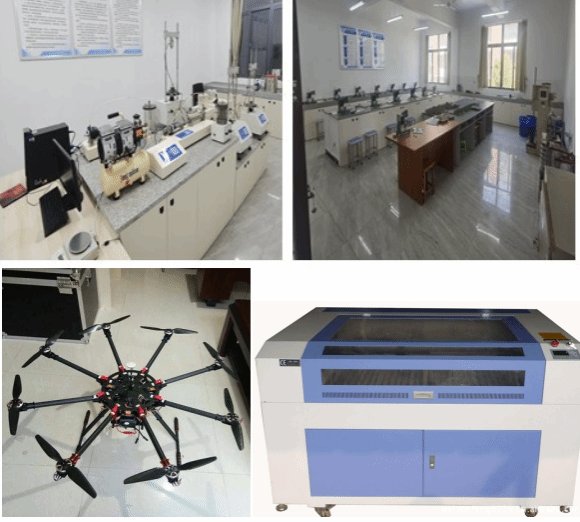学院配备土木工程材料、土力学、“3S”、测量与制图、智能虚拟仿真、数值模拟等15个教学、科研实验室。配置浪潮高性能服务器、高性能航测无人机、大型绘图仪、大型扫描仪、电子扫描仪、万能试验机、全自动变量浓缩仪、万能试验机、建筑模型激光雕刻机、宽幅绘图仪、建筑房屋构造VR教学系统等一批先进的教学科研仪器设备,为全院学子和教职员工进行学习和科研工作创造了良好的条件。