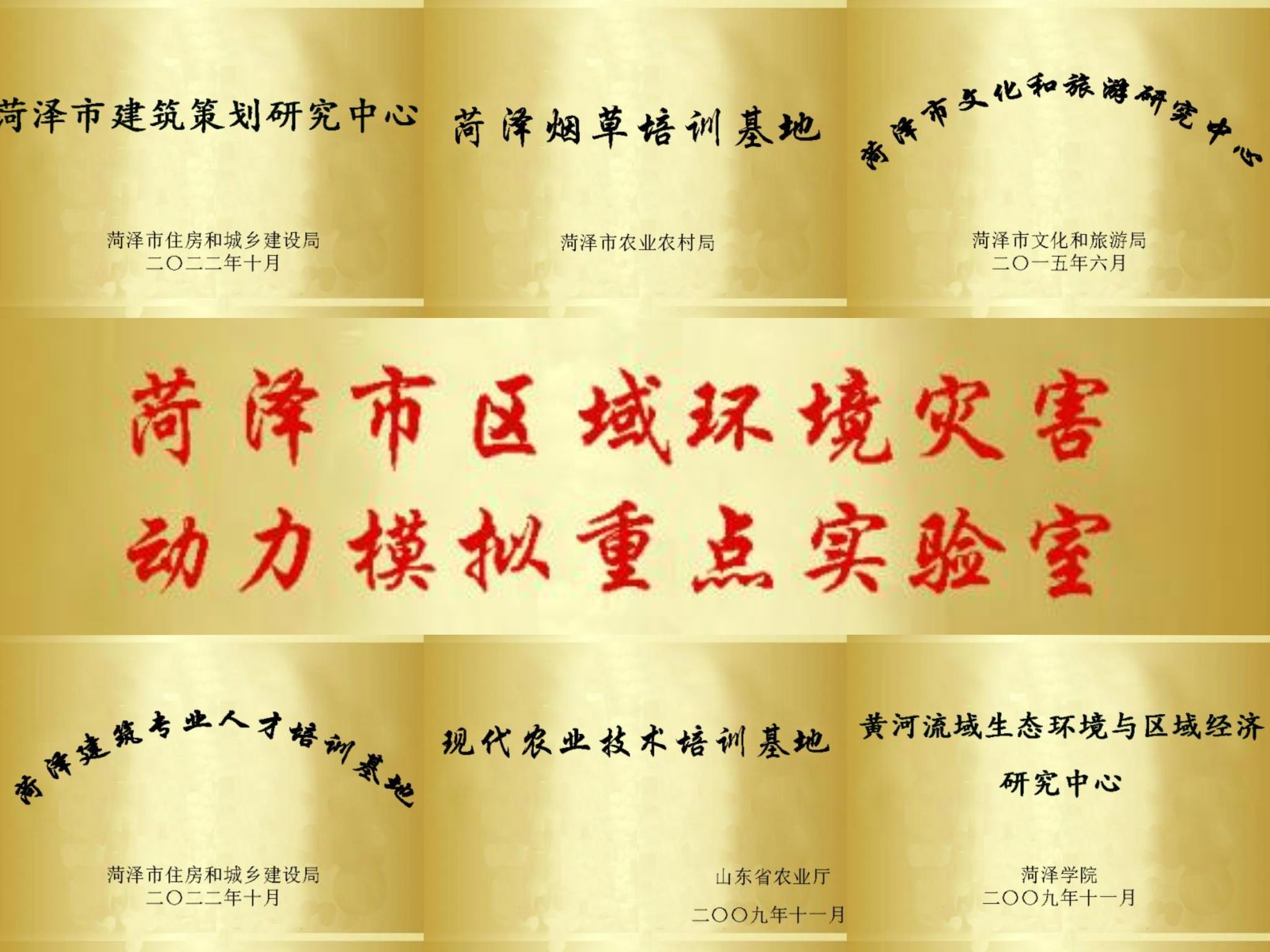 围绕学校办学定位和学科发展目标,学院已建成山东省现代农业技术培训基地、菏泽市区域环境灾害动力模拟重点实验室、菏泽市地热清洁能源勘查及开发利用重点实验室、黄河流域生态环境与区域经济研究中心、菏泽市建筑策划研究中心、既有建(构)筑物全寿命周期安全运维研究中心、菏泽市建筑结构灾害治理研究中心、新型建筑结构与地下空间围岩稳定研究中心、菏泽市文化和旅游研究中心等多个实验研究中心。