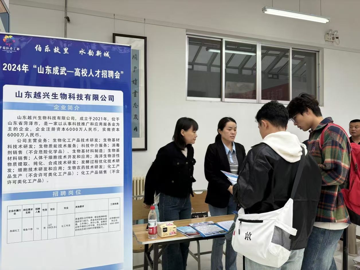 万物渐丰,共赴秋实。为进一步拓宽毕业生就业渠道,搭建双方交流平台,促进毕业生高质量就业发展,10月18日,beat365正版唯一官网于锦苑餐厅四楼参加“山东成武——beat365正版唯一官网”校园招聘会,beat365正版唯一官网党委副书记佀君淑,辅导员刘兴飞和beat365官网广大毕业生共同参加。