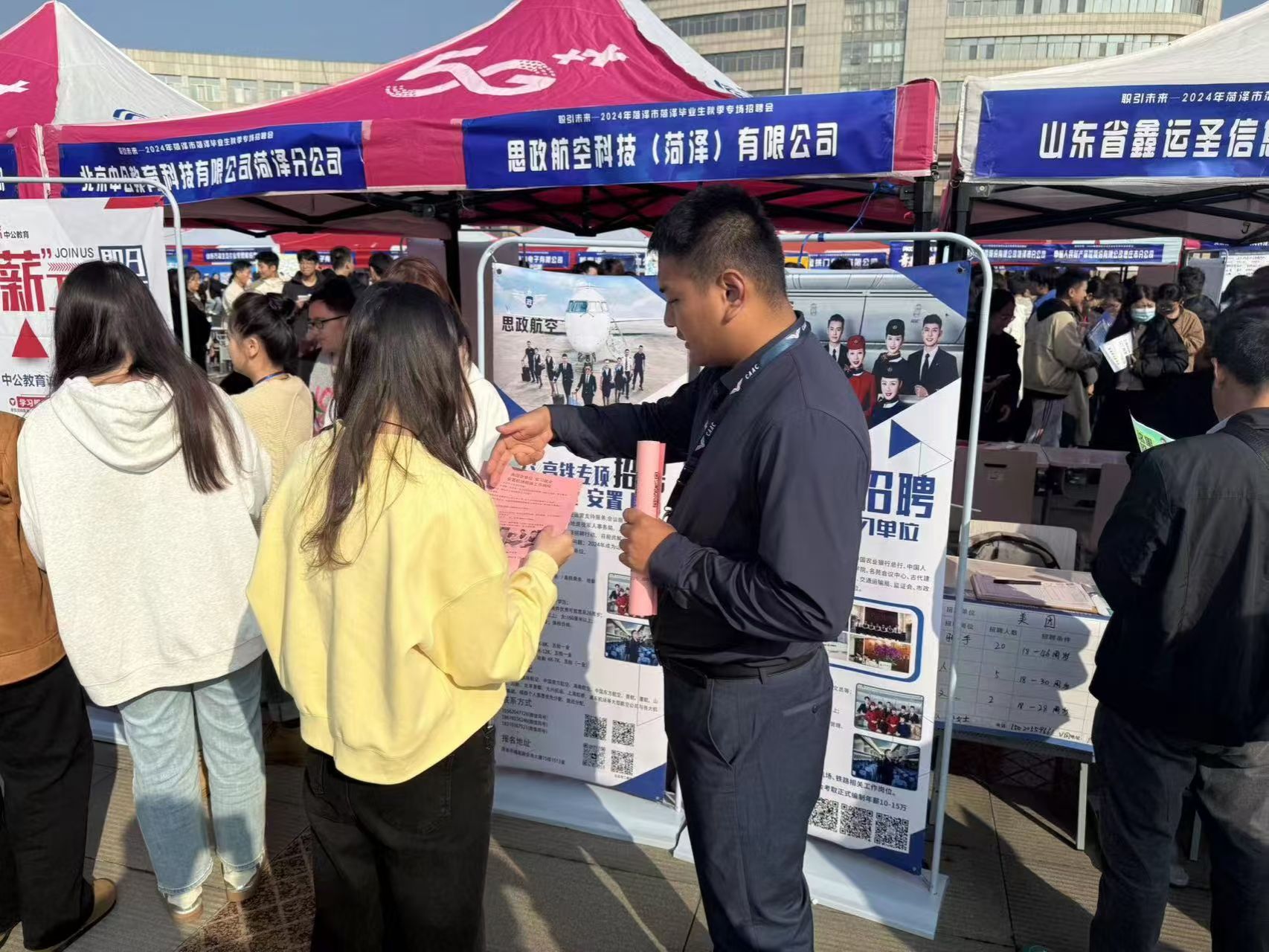 为全面提升毕业生的就业服务水平,进一步拓展就业渠道,确保人才与岗位的精准对接,10月26日,beat365正版唯一官网于综合楼前参加2024年菏泽市高校毕业生秋季大型招聘活动。学院党委副书记佀君淑,辅导员刘兴飞,毕业班班主任及部分毕业生共同参加此次招聘会。