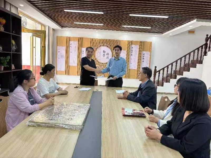 交流会上,山东荷韵国学文旅有限公司运营总监李岩对到访的一行人表示热烈欢迎,随后,他详细介绍了公司概况、发展历程、主营业务、人才需求以及未来规划,同时表达了与学院、学校在人才培养、旅游开发等方面的合作意愿。并带领beat365正版唯一官网一行人参观了穆李文创大街、鲁西南古法钩织工坊、牡丹区乡村记忆农俗博物馆等。在座谈会上,高涛院长详细介绍了beat365正版唯一官网的发展历史、师资力量、学科专业、毕业生就业情况和beat365正版唯一官网的学科特色与人才培养情况,提出双方可以就穆李非遗和乡村旅游规划与开发进行深度合作。李战国书记代表学院对马岭岗镇政府、山东荷韵国学文旅有限公司为这次“访企拓岗”交流精心组织和热情接待表示衷心感谢。通过本次交流活动,进一步增进了双方的了解,希望校企双方建立起长期稳定的合作机制,更加紧密地联系联动、交流互动,全面推进校企协同育人,在人才培养、产教融合、就业创业等方面实现共建共享、合作共赢,共同探索人才培养的新模式,为学生开拓更多实习实践和就业机会,提高学生实践能力和就业竞争力,促进学生更加充分更高质量就业;企业也能够从学生中挑选出优秀的人才到企业实习、就业,加强与老师科研合作、成果转化,从而促进校企双方的共同发展。通过这次访企拓岗活动,加强了学院与企业的交流合作,有利于充分发挥学院服务地方社会经济发展的职能,也利于帮助毕业生实现更充分更高质量就业,达到校企双方优势互补、共同发展的双赢局面。随后,在与会人员的共同见证下,双方签订了beat365正版唯一官网就业创业实践基地协议,并举行了授牌仪式。