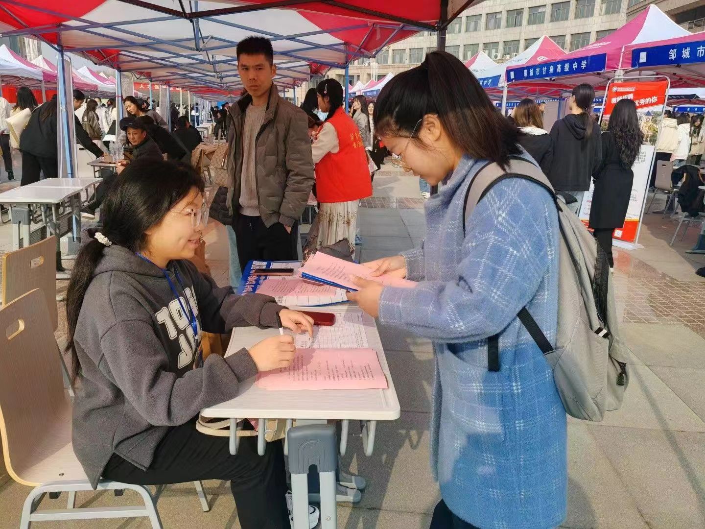 就业工作不仅关乎毕业生的个人发展、家庭幸福,更关乎学校办学质量和社会和谐稳定,做好毕业生就业工作责任重大,使命光荣。为全面贯彻落实党中央、国务院“多渠道开发就业岗位”、“简化优化求职就业手续”“着力加强青年就业帮扶”决策部署,更好地解决我校毕业生就业的问题,3月16日, “‘菏’你一起,职享‘位’来--师范类高校毕业生就业双选会beat365正版唯一官网专场”于综合楼前广场举行,beat365正版唯一官网党委副书记刁永鸽以及全体辅导员随本院求职学生一块来到现场。