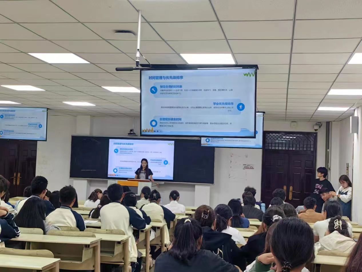 李静然学姐在学习上取得优异的成绩,并且具备丰富的社会实践经验。在交流会上,静然学姐分享了自己的学习方法。她强调了制定合理学习计划的重要性,建议学弟学妹们要根据课程难度和时间安排,合理分配学习任务。同时,她还鼓励大家积极参加各种学科竞赛和社会实践活动拓宽自己的视野。静然学姐的话语激励着在场的每一位同学。