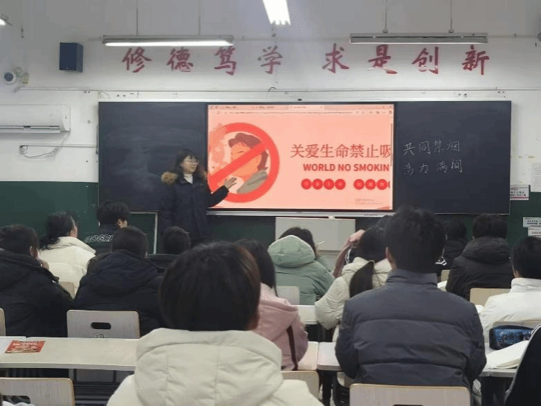此次班会借助丰富的图片与视频资料,深入剖析了吸烟相关问题。从烟草的成分构成、历史渊源,到吸烟成瘾的内在机制,再到其对身体健康的严重损害以及对社会产生的诸多不良影响,一一详尽解读。同时,列举大量因吸烟诱发疾病的实例,以触目惊心的事实有力展现了吸烟对生命健康的巨大危害。班会期间,同学们全神贯注,聆听讲解,收获满满。