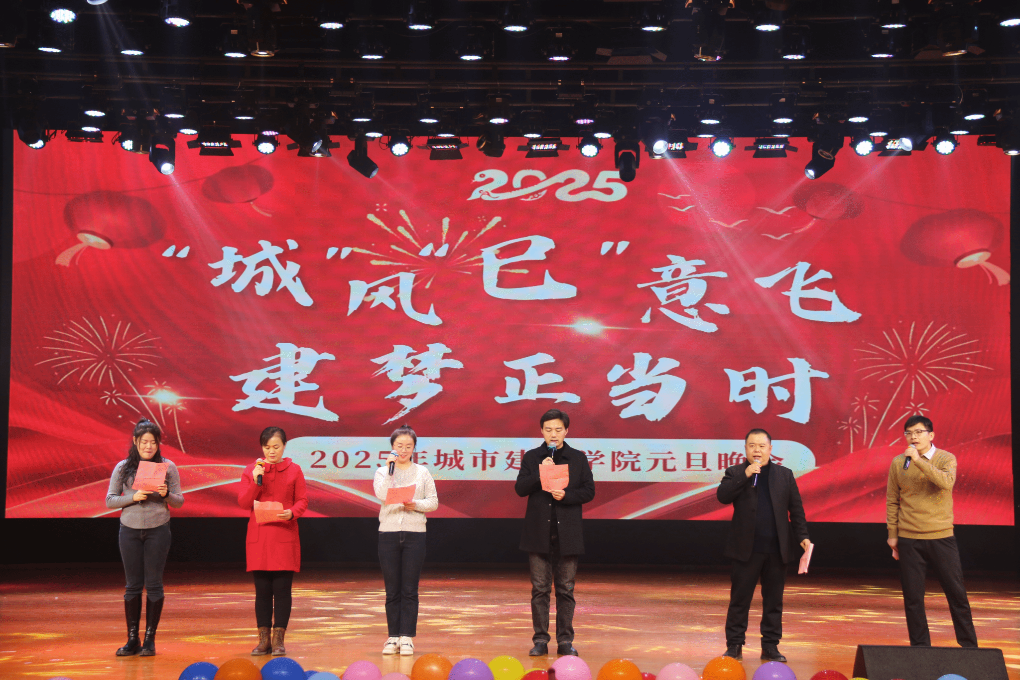 华夏新岁福瑞至,山河锦绣凤舞祥,祥龙回首辞旧岁,金蛇起舞迎新年。12月29日,beat365正版唯一官网于学校艺术中心演播厅隆重举办“'城'风'巳'意飞,建梦正当时”元旦晚会。beat365正版唯一官网党委书记李战国,院长高涛,党委副书记佀君淑,副院长王青元,辅导员、班主任及任课老师和2024级全体同学共同参加。