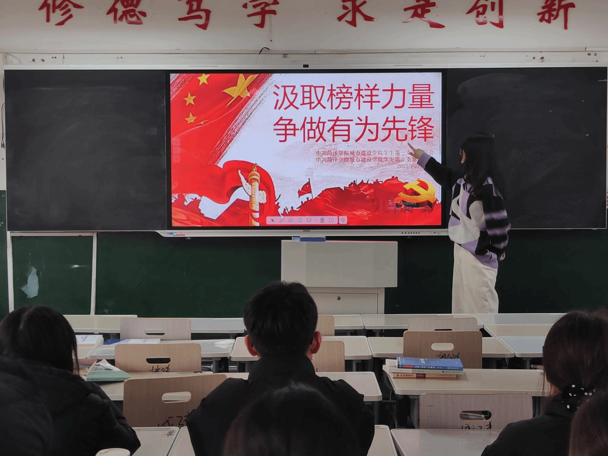 活动伊始,陈伟围绕学生党员要做榜样、做先锋发表重要讲话,她着重强调,新时代的大学生党员应时刻铭记党的嘱托,坚定理想信念,勤奋学习,不断提升自身素质,在学习、工作和生活各方面发挥先锋模范作用。随后,魏圣英带领参会党员观看了《榜样9》宣传视频,并详细介绍了范振喜、钱素云、覃大清、陈清洲、刘小京、黄德宽、林则银7位模范党员代表,以及山东青岛新前湾集装箱码头公司党委、红其拉甫边防连的先进事迹。这些榜样来自不同行业和领域,以实际行动诠释了共产党员的初心和使命。最后,参会党员面向鲜红党旗,举起右拳,在商子晗同志的领誓下庄严宣誓。铿锵有力的誓言,彰显出他们对党的忠诚与担当,进一步强化了党员的荣誉感、责任感与使命感。学生党员要将学习榜样与实际行动紧密结合,在学习和生活中积极发挥模范带头作用,为班级和学院的发展贡献青春力量。