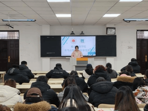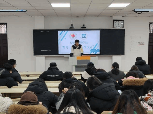 会议伊始,刘兴飞率先详细介绍了青鸟计划的内容、报名时间与报名方式,随后从明确职业方向、拓展就业资源、积累实践经验、助力家乡建设四个维度,向在场学生深入阐述了参与青鸟计划的显著优势,鼓励同学们积极投身家乡的青鸟计划项目。