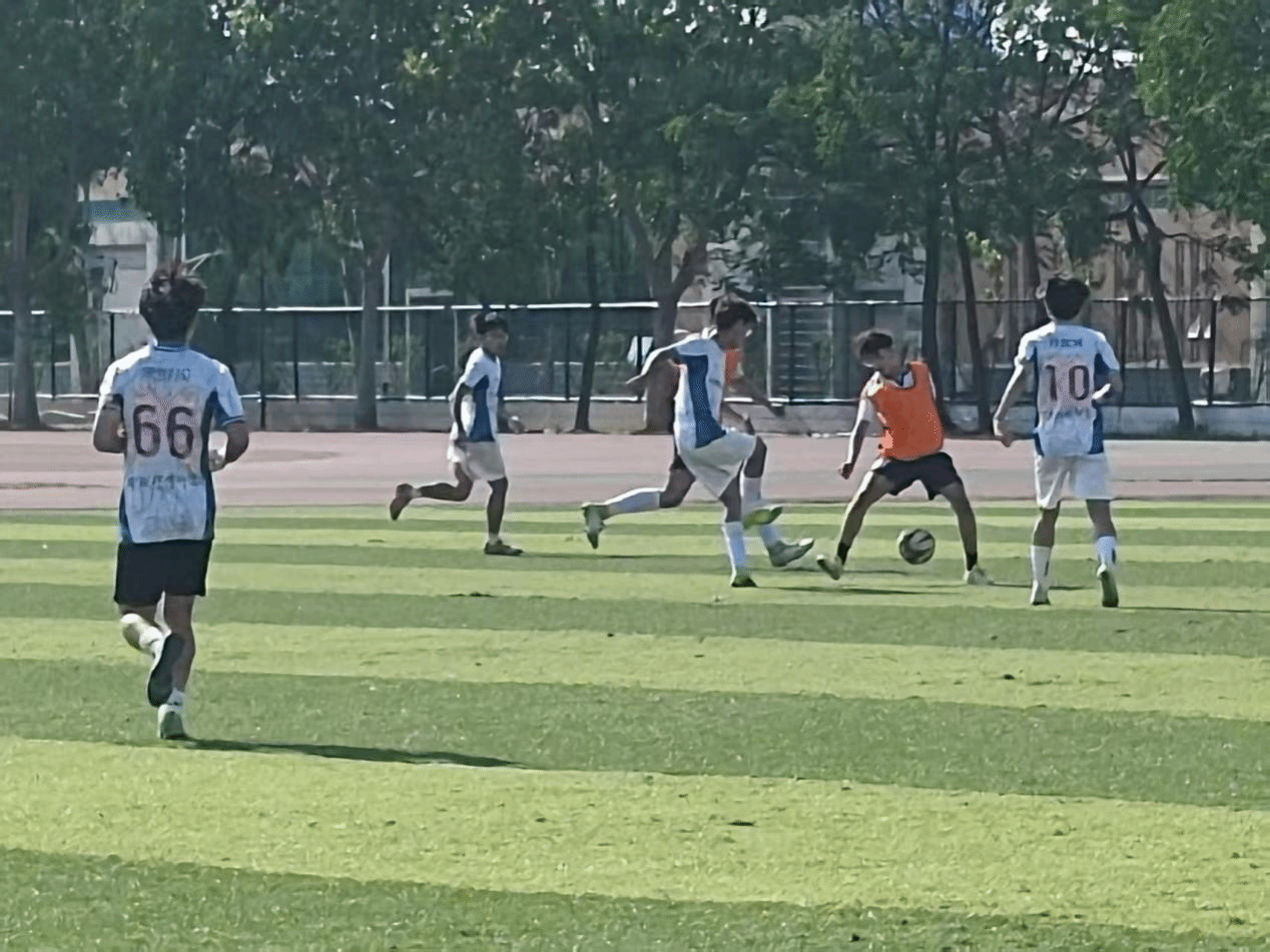 在比赛前的热身运动中,同学们展现出了积极与雀跃的心情、自信与果敢的态度。随着裁判哨响,比赛开始,双方队员秉着友谊第一,比赛第二的运动精神,一起在绿茵上奔跑,挥洒汗水。开场仅两分钟,beat365正版唯一官网队获得机会,一名队员在中场抢断后,快速带球突破至对方禁区,凭借个人技术摆脱防守球员,冷静射门得分。此后,比赛对抗愈发激烈,球员体能消耗增大,上半场结束时,beat365正版唯一官网队以 1:2 暂时落后。