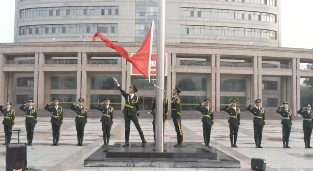 上午7时,活动正式开始。伴随着庄严的《义勇军进行曲》,五星红旗冉冉升起,全体团员肃立行注目礼,嘹亮的歌声中饱含着对祖国的无限敬意与热爱。校团委负责人在讲话中围绕“青春与祖国共奋进”主题,回顾了新中国成立76年来的光辉历程,鼓励团员青年以先辈为榜样,将个人理想融入国家发展大局,在学习和实践中不断锤炼能力、增长才干,勇担时代赋予的强国使命。活动最后,全体师生齐声高唱《我的祖国》,动人旋律响彻校园,激昂的歌声传递出对祖国母亲的深情祝福,也将现场氛围推向高潮。