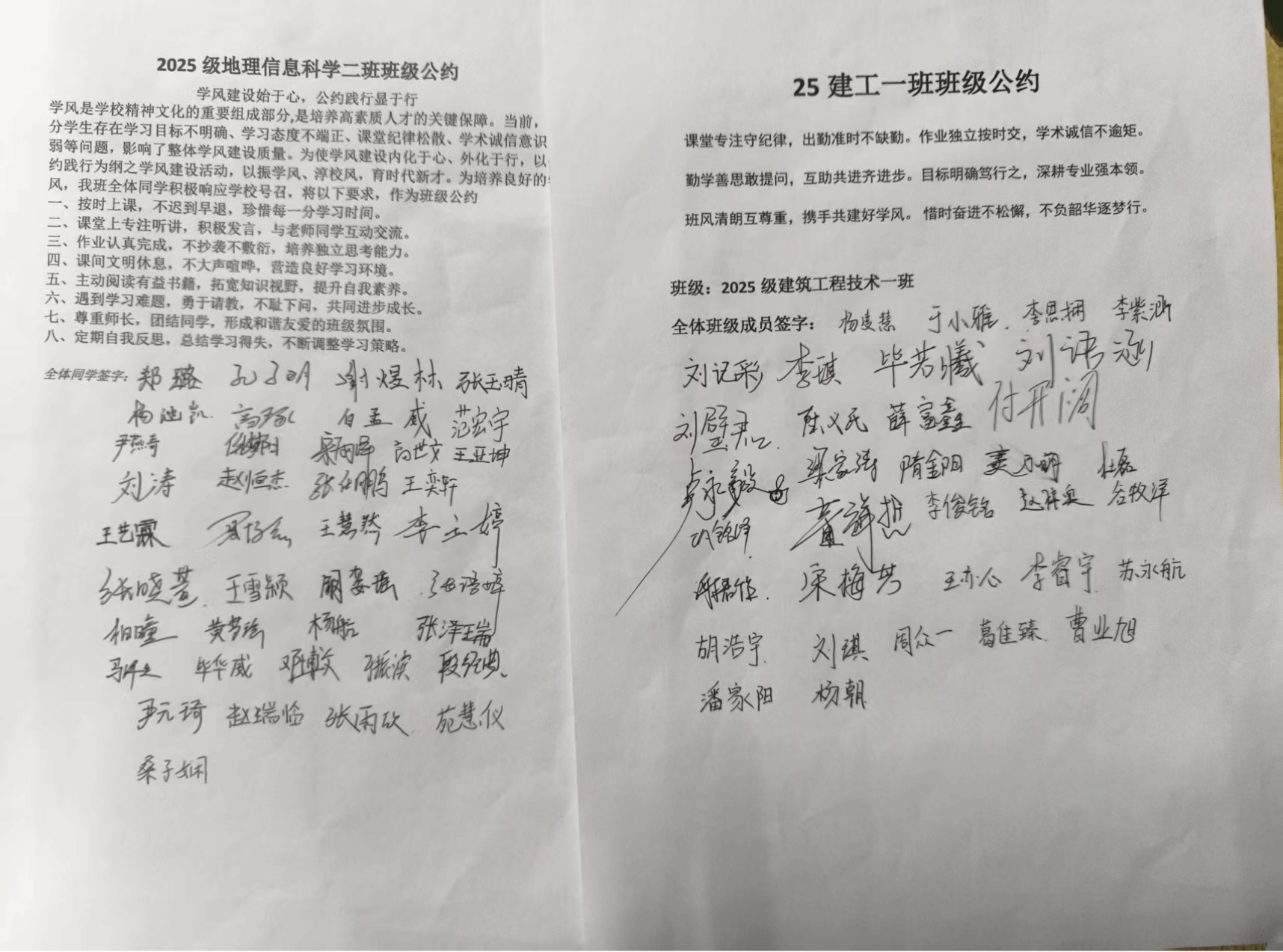 在主题班会环节,各班班长首先阐明学风建设对个人与集体的重要意义,引导同学们结合出勤、作业、课堂互动等实际情况,梳理学风薄弱点;随后学生分组协作,拟定涵盖勤学笃行、行为规范、互助共建等内容的班级学风公约,全体签字确认,增强共建共守意识。同时,学院推广“无手机课堂”,通过统一配置手机收纳袋,引导学生主动暂存电子设备,减少课堂干扰,提升听课专注度,推动课堂教学从“知识传授”向“能力培养”转型。活动现场氛围积极,同学们响应热烈,纷纷表示将以务实行动投身学风建设,以实干作风锤炼优良学风,为营造勤学善思、笃行致远的班级学习氛围贡献力量。