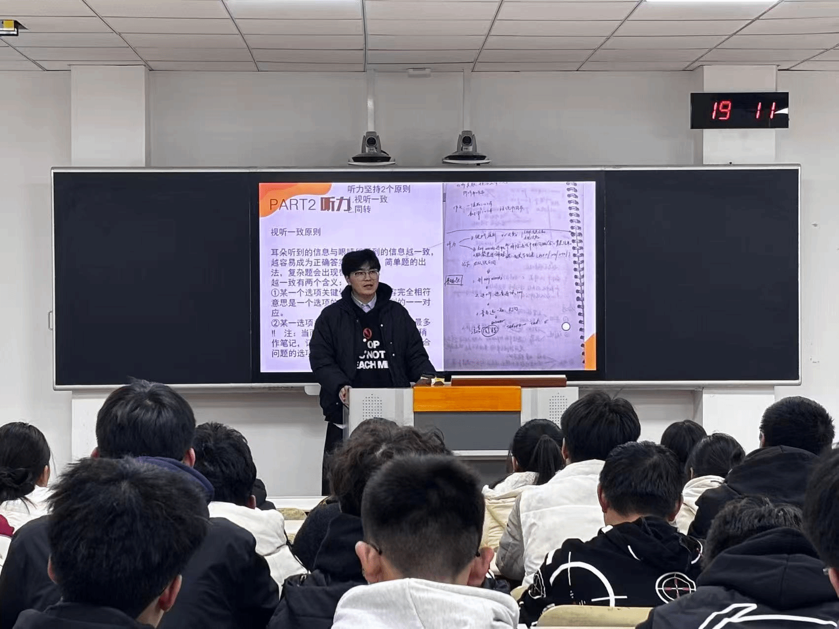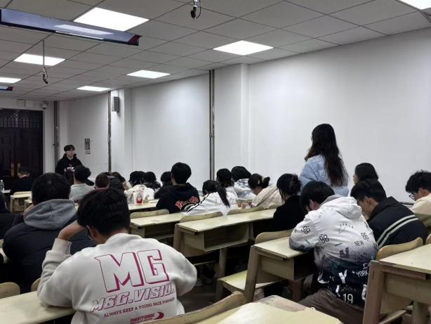 在互动答疑环节,学生们积极提问,问题涵盖四六级备考时间分配、竞赛选题策略、专业课程学习等多个方面。两位分享嘉宾结合自身学习历程耐心解答,并围绕四六级考试技巧、专业竞赛准备等方面分享了实用经验,现场气氛热烈,交流深入。