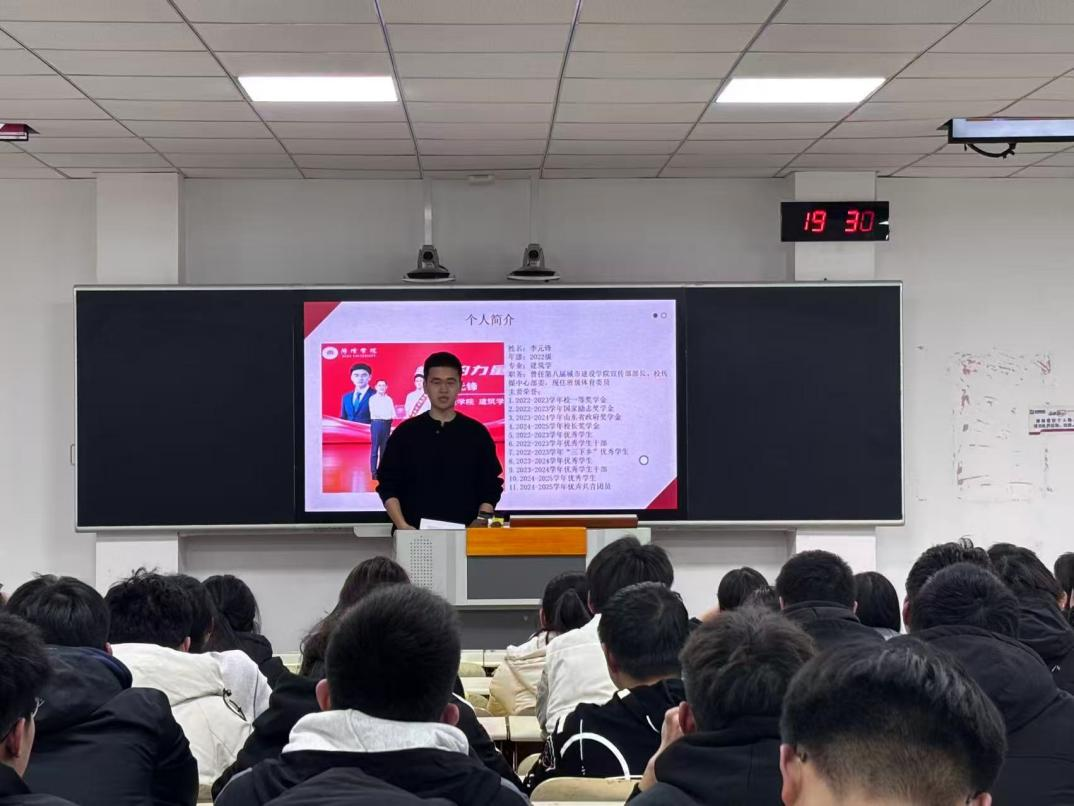 随后,2022级建筑学专业李元锋同学结合个人学习与竞赛经历,分享了专业能力提升的路径与方法。他强调了扎实掌握手绘、模型等基础技能的重要性,并鼓励同学们积极学习各类专业设计软件与渲染工具,提升数字化设计能力。在竞赛方面,他结合自身参与的实际项目,介绍了从概念构思到方案表达的全过程经验,引导同学们注重理论联系实际,将课程所学灵活运用于设计实践与创新探索中。