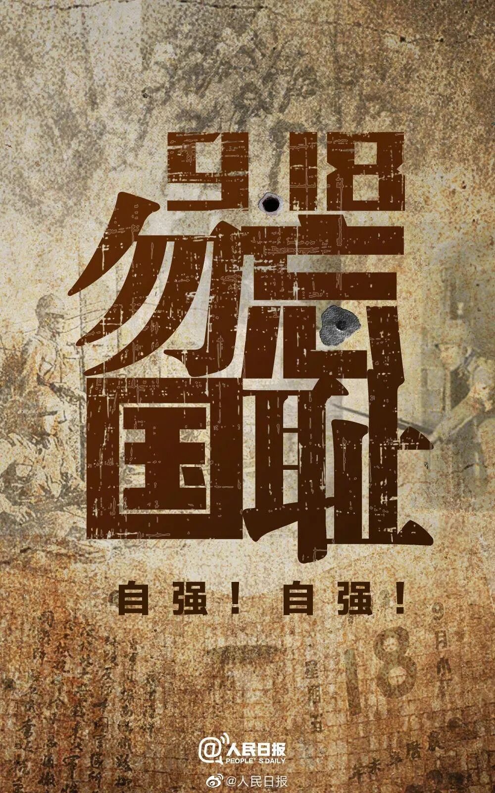 1931年9月18日,“九一八”事变爆发,白山黑水间,中国人民奋起抵抗。自此,中华民族开启长达14年的浴血奋战。大半个中国被践踏,3500多万同胞伤亡。一寸山河一寸血,不忘曾经烽烟起,心中长鸣警钟声!,勿忘国耻,吾辈自强!