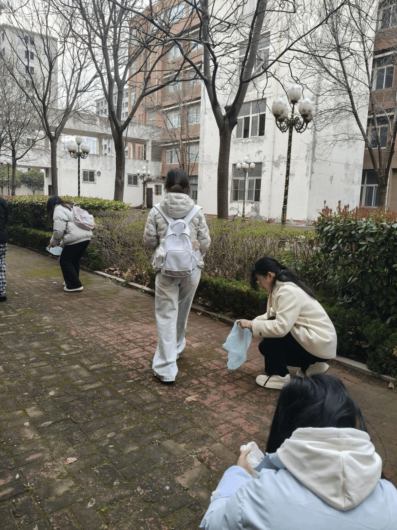 活动开展前,学院专门召开动员部署大会,明确活动意义、任务分工及安全规范,进一步强化志愿者责任意识与服务意识,为活动顺利开展奠定坚实基础。活动现场,志愿者们分工协作,有序推进各项服务工作。大家分组对校园道路、绿化带及公共区域进行全面清扫,细致清理卫生死角;同时针对校园内单车乱停乱放问题,集中整理摆放,规范停车秩序。此外,志愿者们还利用环保材料精心搭建爱心猫窝,实地考察后选择安全避风区域完成安置,为校园流浪小动物搭建温暖庇护所,用点滴行动传递人文关怀。