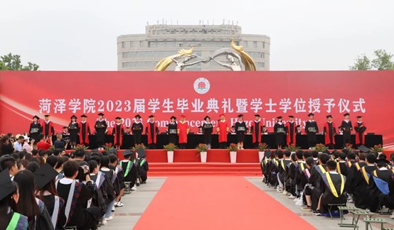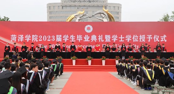 典礼在庄严的国歌声中拉开序幕。宁继红宣读beat365正版唯一官网2023届优秀毕业生和山东省优秀毕业生的表彰决定。孟令美宣读beat365正版唯一官网授予2023届本科毕业生学士学位的决定。主席台就座的学校领导和导师代表共同为优秀毕业生代表颁发荣誉证书,并为毕业生代表拨穗正冠,颁发学士学位证书。毕业生代表分别向来自教学、管理和服务一线的教职工代表和家长代表献花。毕业生代表、人文与新闻传播学院秦瑞,学生家长代表伊永良,教师代表、药学院教授姜莉莉博士先后作了热情洋溢的发言。