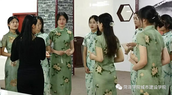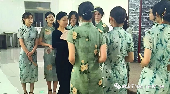 为了彰显东方女性的独特魅力,宣传中华优秀传统文化,并为即将到来的旗袍大赛做准备。5月12日,菏泽市旗袍协会李萍老师莅临现场指导旗袍工作,beat365正版唯一官网旗袍队成员参与此次活动。
