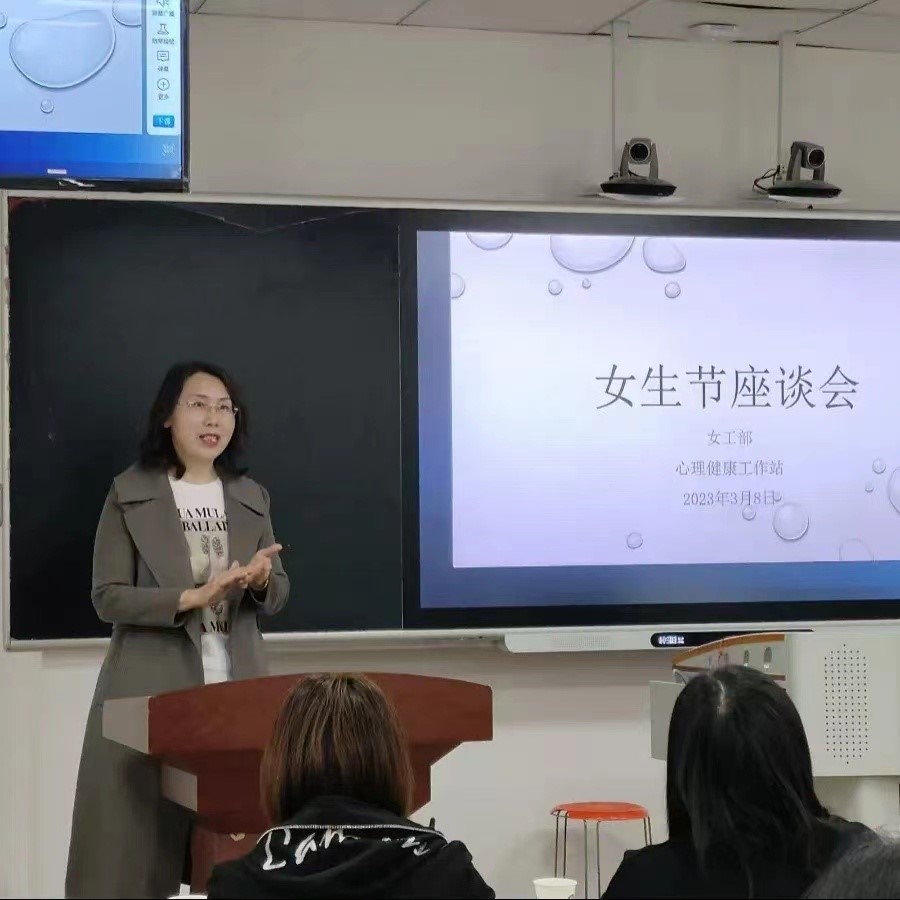 座谈会伊始,学生干部王静通过PPT及相关视频,结合女大学生常见的心理问题对女性心理健康知识进行科普与解析,通过事例,让