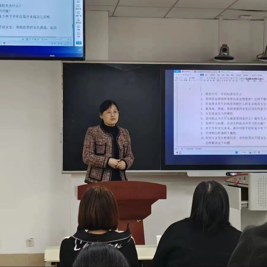 大家看到了许多女性的力量,激励大家在以后的生活中从容自信。随后女生代表讲述了自己作为女生在学校学习和生活方面的感想、建议及未来人生规划。在师生互动环节,同学们就当前生活中所关心的七个话题展开讨论,老师结合自身经验和经典事例,进行详细的一一解答。在此过程中,几位老师们也对自己感兴趣的话题与大家进行了深刻讨论,该环节的每轮对话不仅是师生之间的解惑,更是两代知识女性之间的深度交流。同学们的困惑得到解答的同时也能够更深层次的领悟到女性力量的魅力。