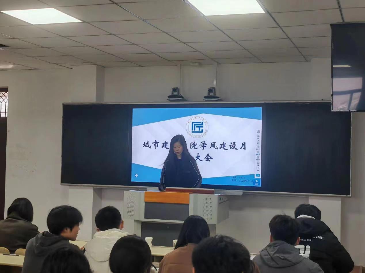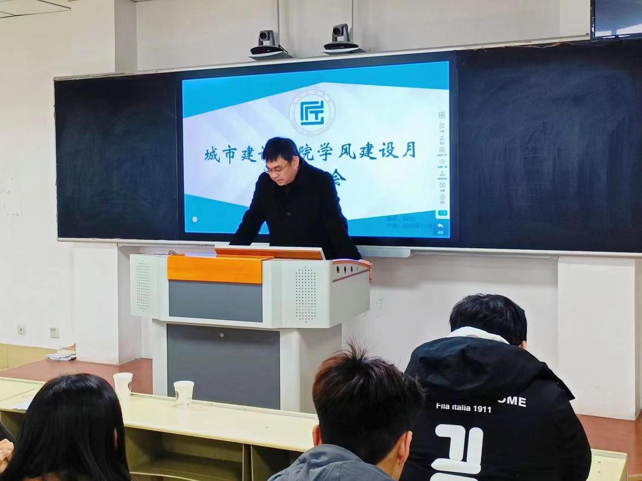 会议伊始,由卜院长发表重要讲话。他强调,大学生的青春应该用来奋斗,同学们要坚持底线思维,规范学习行为,养成良好习惯,更要增强自我意识,提高自身的专业能力,踔厉奋发、砥砺前行。学风建设作为学校全面推进素质教育的一项重要工作,是学校提高教学质量、培养优秀人才的重要保障,也是校园文化建设的重要组成部分,它不仅关系到同学们的学习效果,还关系到校园文化建设和社会评价。卜院长指出,学风建设要从思想教育和日常管理两方面入手,在日常生活中端正同学们的学习态度,营造良好的大学学习氛围。