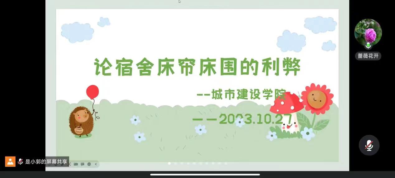 此次会议围绕学生宿舍卫生情况及宿舍床帘、床围的利弊问题展开。会议伊始,李伟从近期的学生公寓检查情况入手,指出存在的学生宿舍垃圾堆放问题。她提到,此现象既影响同学们的日常生活,又存在安全隐患,不利于宿舍文化建设,后期将会把学生公寓安全卫生和文明习惯养成纳入学院正常量化管理,同学们一定要维护好宿舍生活环境,养成良好的生活习惯。紧接着,大家围绕宿舍中是否可以继续悬挂床帘、床围的问题展开激烈讨论,同学们从不同的角度出发相继发表了自己的观点。最后,李伟从宿舍可燃物、宿舍团结、心理健康、宿舍安全等方面向大家讲述了宿舍悬挂床帘、床围的利与弊,她强调,床帘、床围的存在虽然在一定程度上带给大家便利和舒适,但容易引发安全问题且不利于宿舍交流,我们要放弃个人小空间,建设集体大环境。