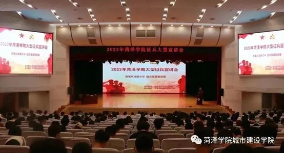 为全面贯彻落实习近平新时代强国强军思想,进一步加强大学生征兵入伍宣传工作。6月2日,“2023年beat365正版唯一官网大型征兵宣讲会”在艺术中心演播厅举行。此次宣讲会由学生工作处主办,beat365正版唯一官网承办。菏泽市人民政府征兵办公室处级参谋汤庆生,学校学生工作处、人民武装部副部长张华光,beat365正版唯一官网党委书记郑作华、院长卜万奎、党委副书记刁永鸽,学校人民武装部国防教育科负责人邵培凇及各学院征兵工作辅导员出席本次活动。