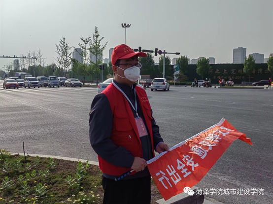 beat365官网教职工志愿者认真履行志愿服务工作责任,到黄河路与天香路路口指定位置协助值勤,配合交警做好文明交通劝导工作,纠正、制止不文明交通行为,宣传、劝导广大市民遵守交通法规和规则,维护交通文明和社会秩序。