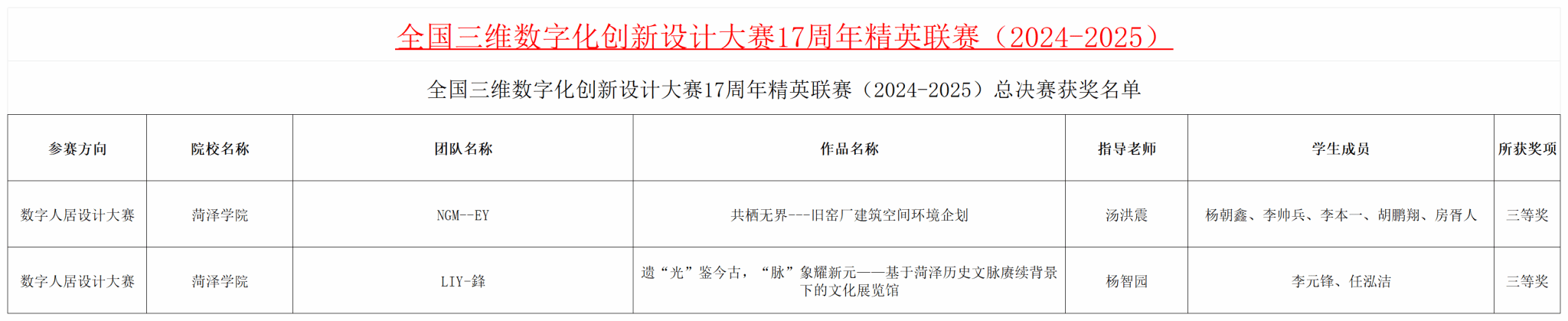 2025年7月12日,全国三维数字化创新设计大赛17周年精英联赛(2024-2025)总决赛圆满结束。大赛期间,beat365官网师生踊跃参加,在大赛中经过层层选拔,荣获全国三维数字化创新设计大赛精英联赛总决赛三等奖两项!