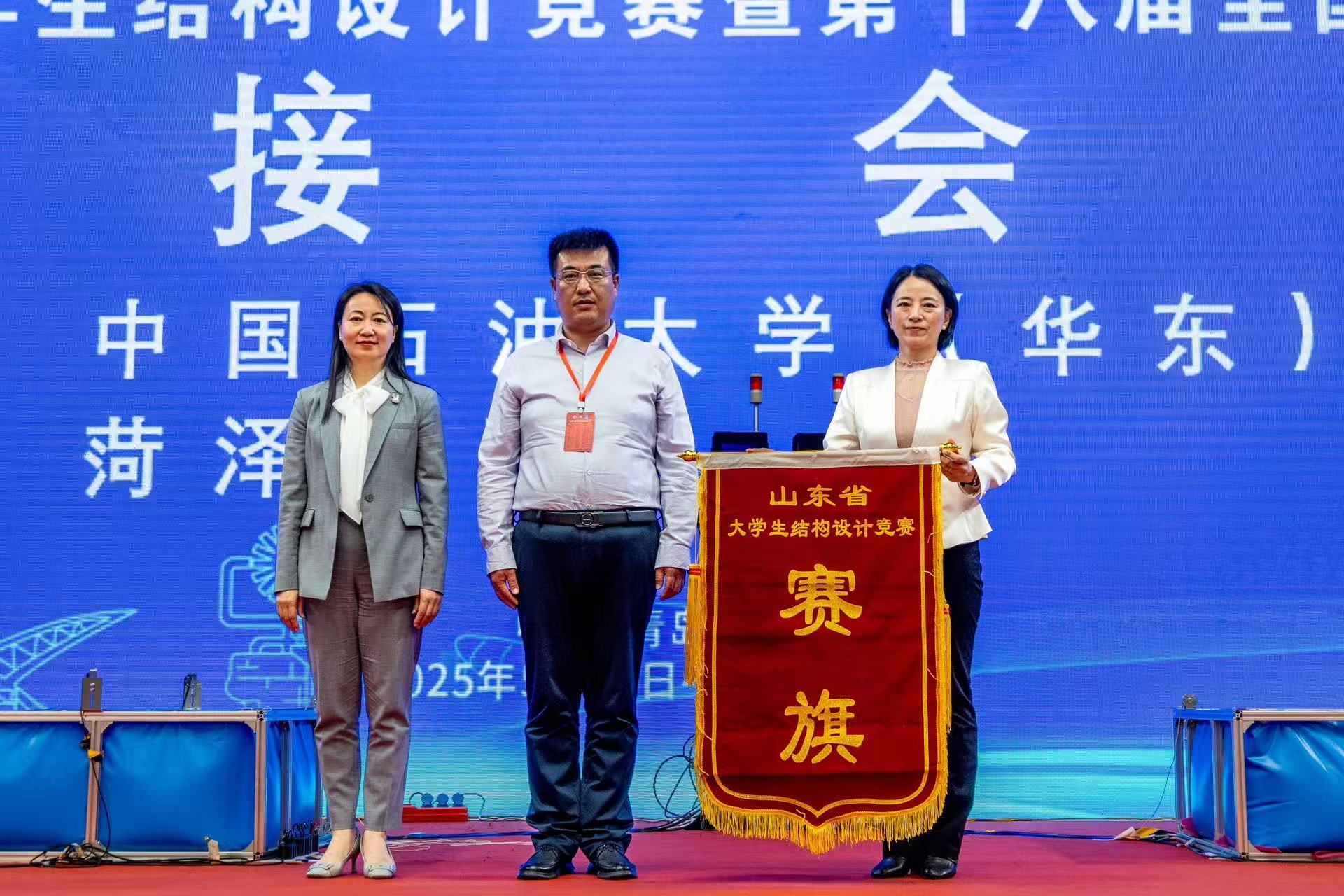 5月23日至5月25日,第十七届山东省大学生结构设计竞赛暨第十八届全国大学生结构设计竞赛分区赛在中国石油大学(华东)举行,来自山东大学、中国海洋大学等省内36所高校的73支团队350余名土木类专业学子参赛,学校党委委员、副校长曲相艳带队参加比赛。beat365官网王青元、潘赠宇老师指导的两支学生团队分别获二等奖和三等奖,beat365正版唯一官网荣获“最佳组织奖”并获得第十八届(2026年)省赛的承办权。