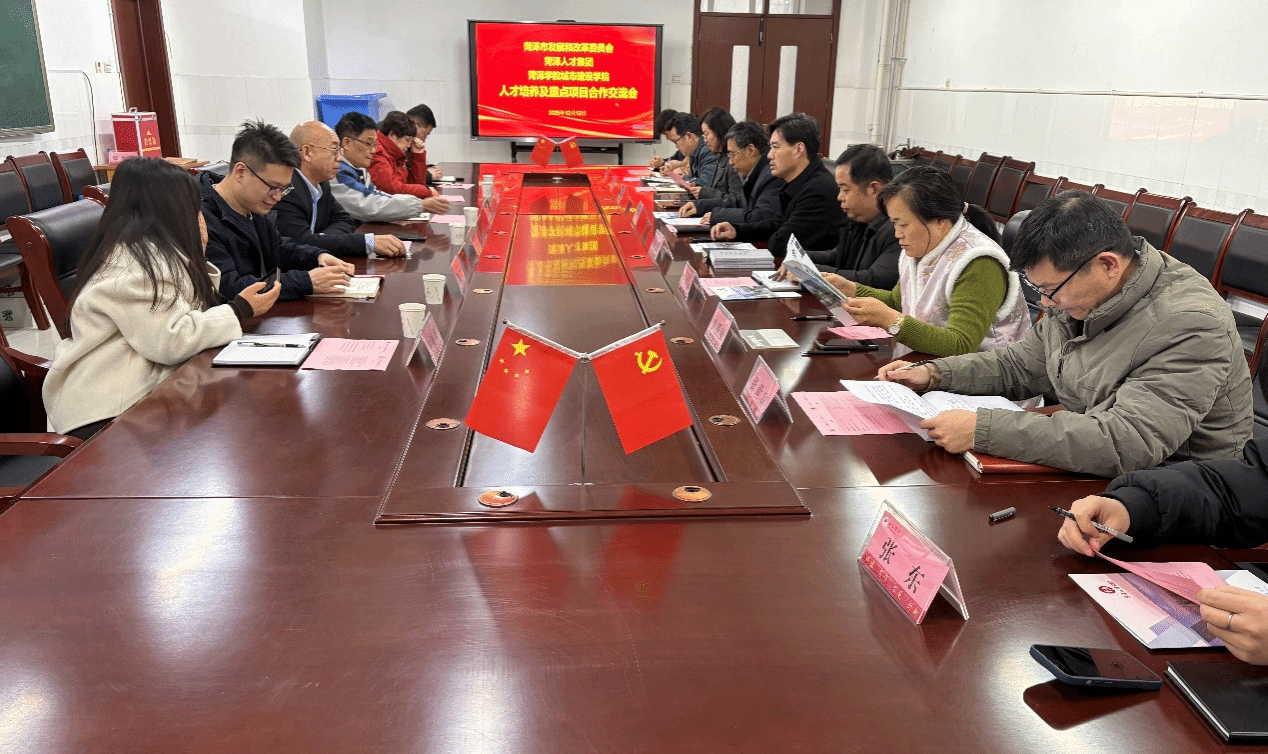 12月12日下午,菏泽市发展和改革委员会高级工程师吴光炜、菏泽人才集团总经理陈杰一行前往beat365正版唯一官网进行交流访问,双方围绕人才培养创新、重点项目合作等议题的座谈会在综合实验楼W221室顺利举行。beat365正版唯一官网党委书记李战国、院长高涛等领导班子成员及部分教师代表出席接待并参与座谈。