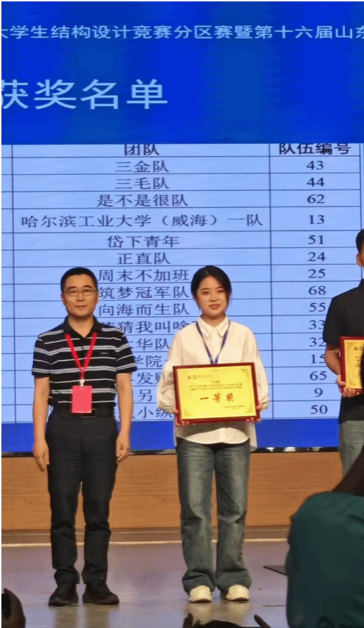 2、2024年05月,获第十七届全国大学生结构设计竞赛分区赛暨第十六届山东省大学生结构设计竞赛“一等奖”。