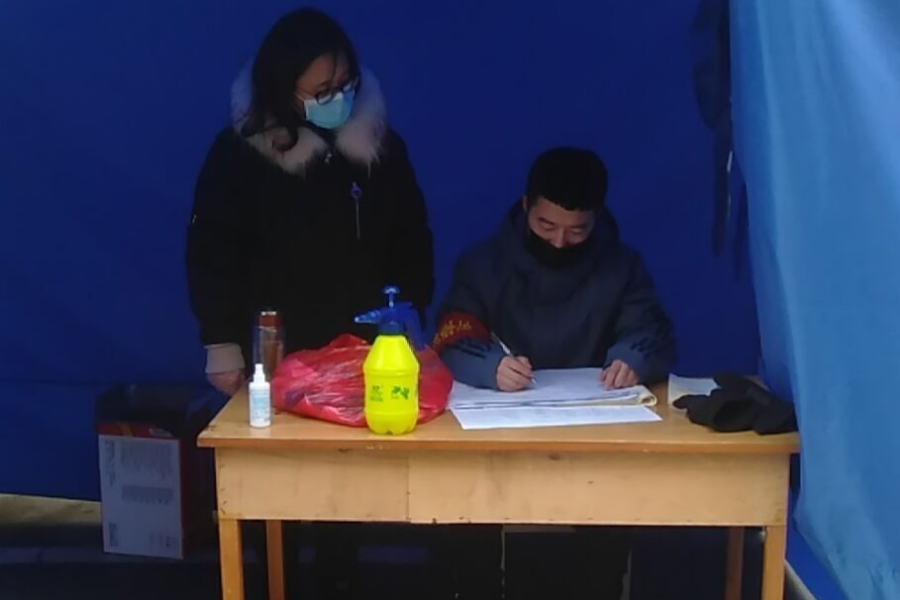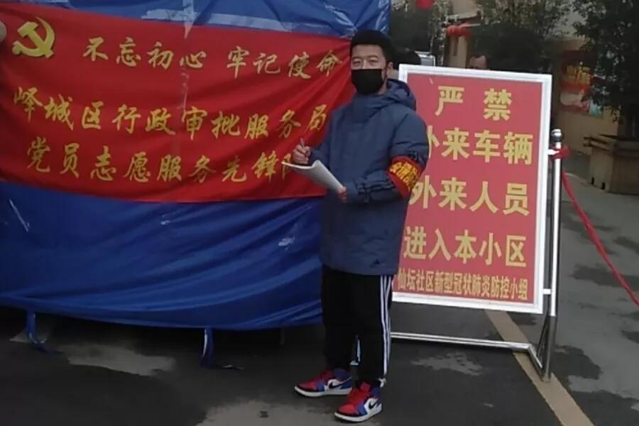 1月19日,邵炳衡终于如愿以偿戴上了社区统一发放的志愿者红袖标,成为了坛山社区入户排查工作人员中的一员。