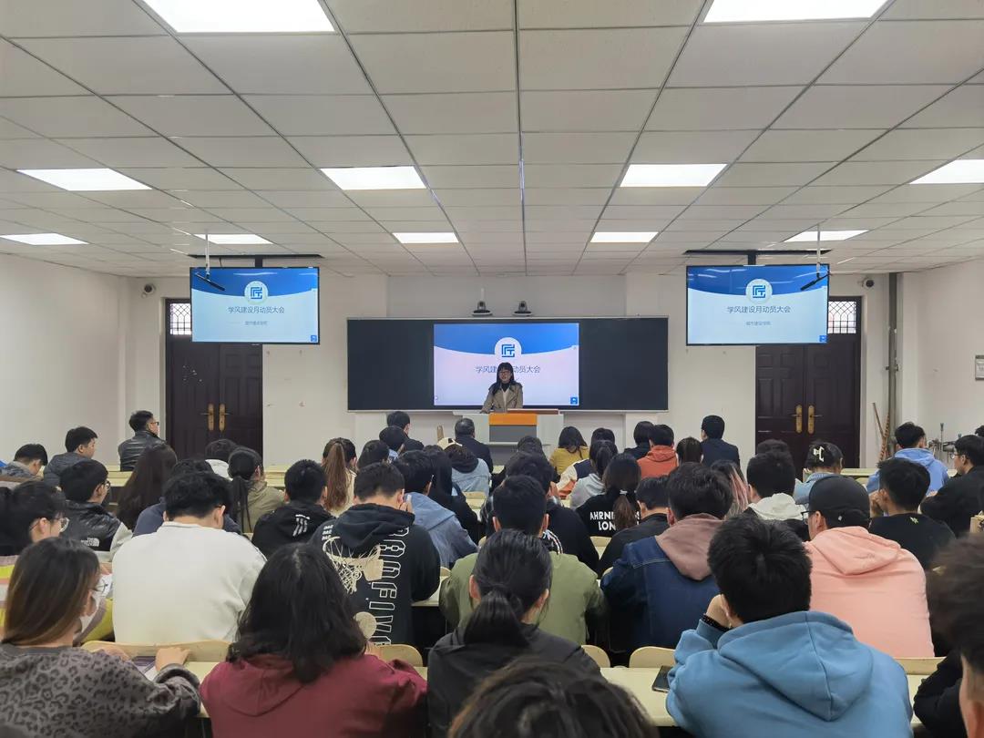 大会第一项,刘夏菡对beat365正版唯一官网学风建设月方案进行了宣读,她表示,beat365正版唯一官网将坚持管理与教育相结合,进一步加强学生课堂纪律教育管理工作的检查,引导学生明确学习目标,端正学习态度。大会第二项,由学生会主席卢文龙宣读beat365正版唯一官网学风建设月倡议书。倡导全体学生要以主人翁的姿态积极参与学院学风建设的各项活动,行动起来,从我做起,从现在做起,共同促进良好学风的形成。大会第三项,郑作华进行了总结,强调要切实实施学风建设月方案,教师和学生要互相协调、互相沟通,共谋思路,以形成良好的学风氛围。
