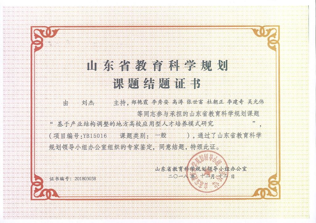 beat365官网获批并结项“山东省教育科学规划课题”《基于产业结构调整的地方高校应用型人才培养模式研究》 (项目编号:YB15016)